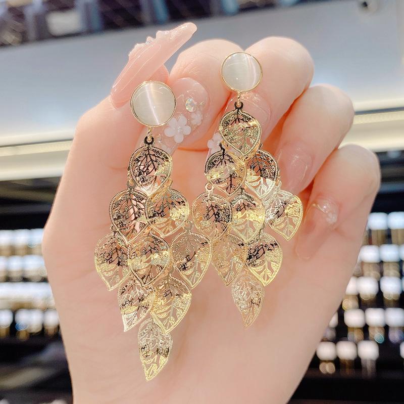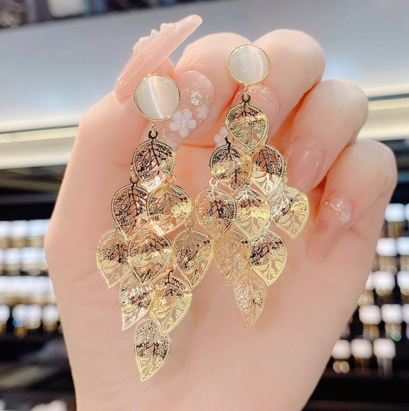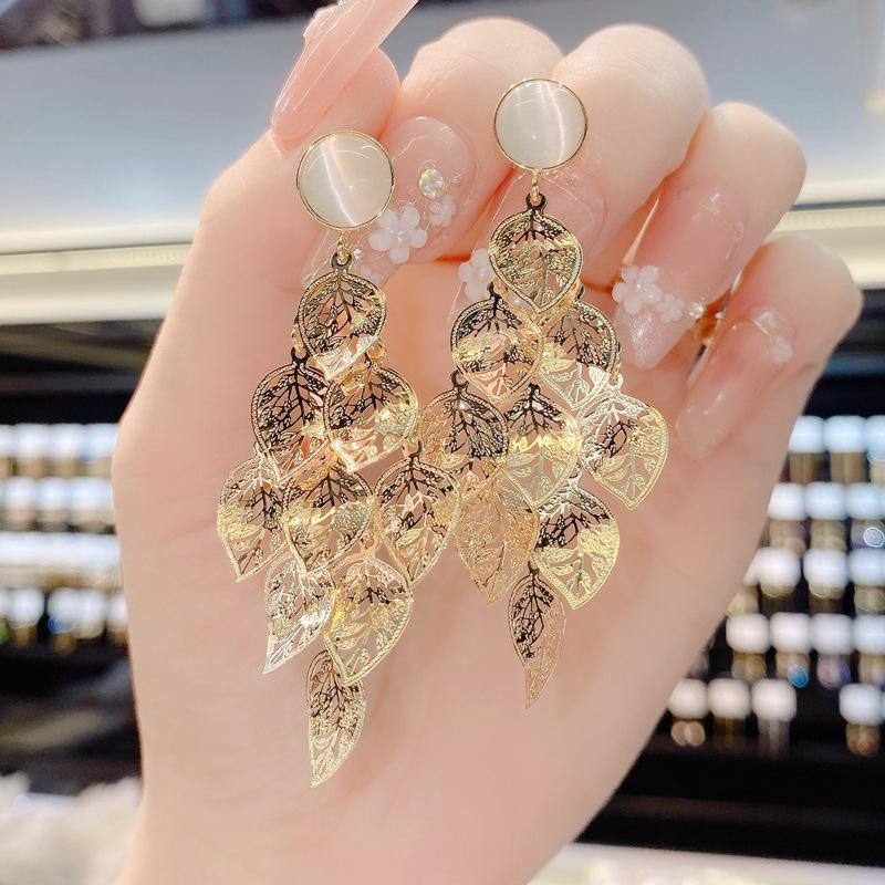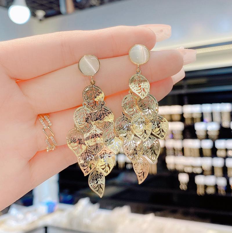 Compra Pendientes de mujer con borlas, estilo exagerado, de alta gama y con un toque de atmósfera, de una sola hoja, con hojas huecas, pendientes largos famosos de Internet. al por mayor en Joom.pro