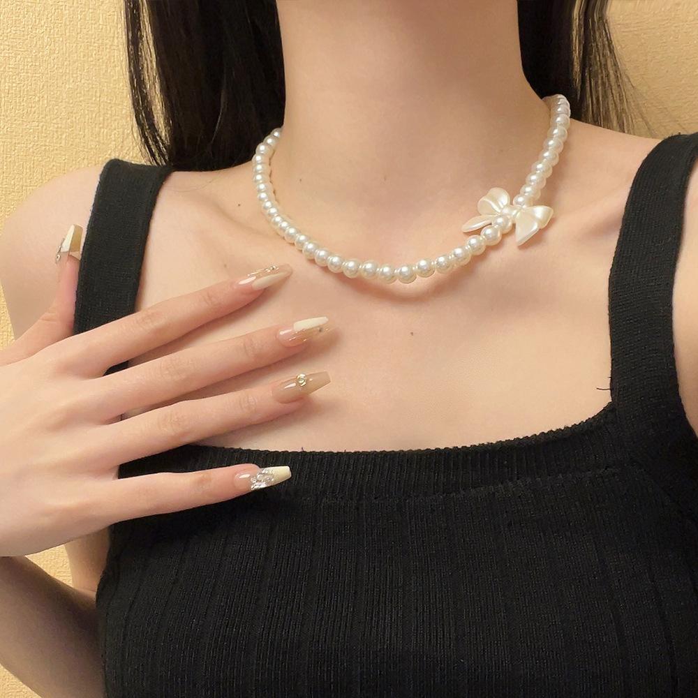 Cadena de clavícula con lazo de cuentas, estilo nuevo, estilo frío, cadena de collar de moda, diseño de nicho, accesorios de collar avanzados