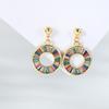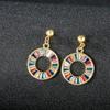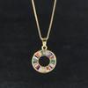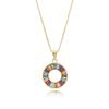[Cadena de acero de titanio] Europa y Estados Unidos nuevo cobre circonita chapada en oro circonita colgante collar redondo pendientes de aro de diamantes traje