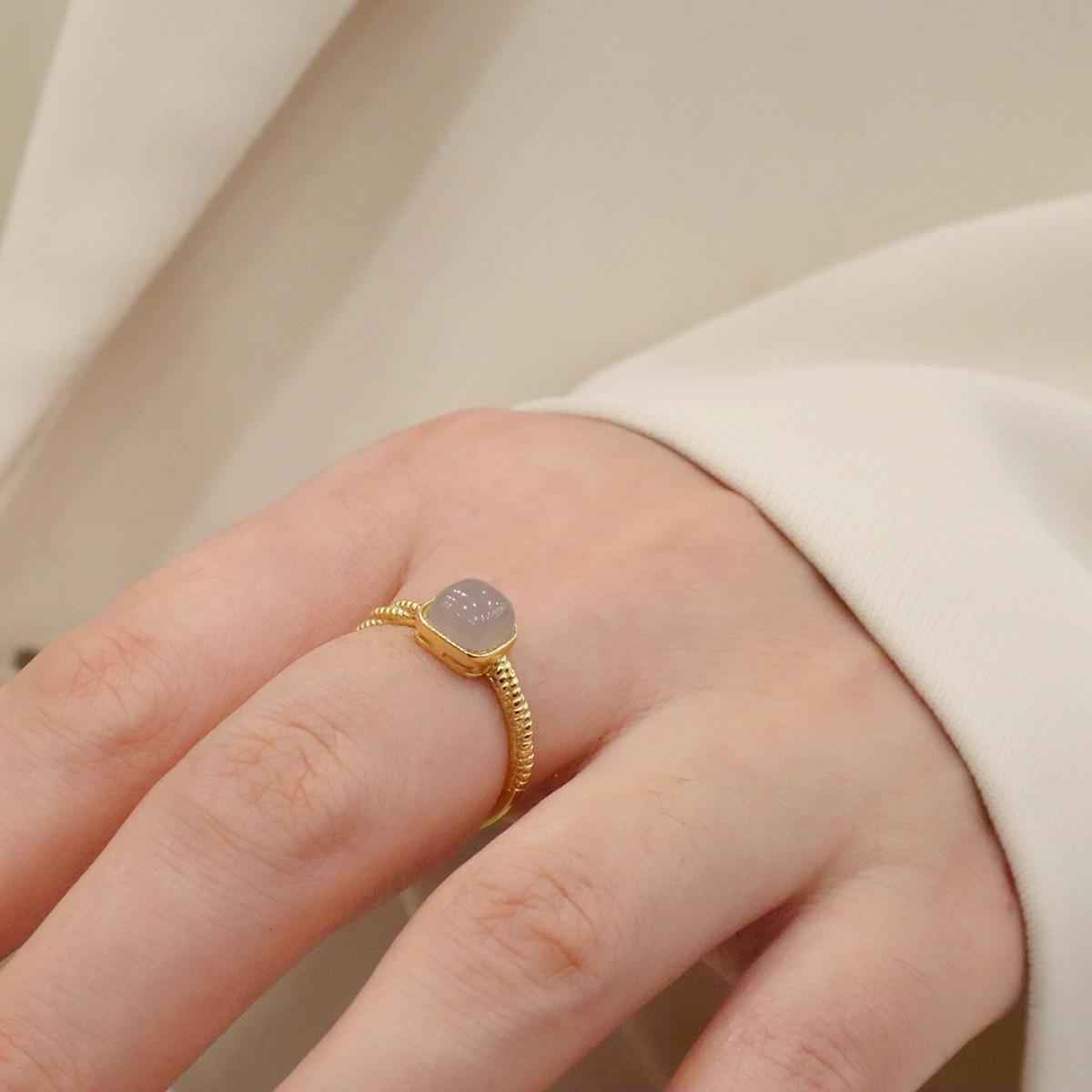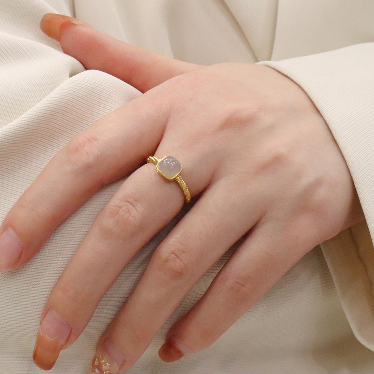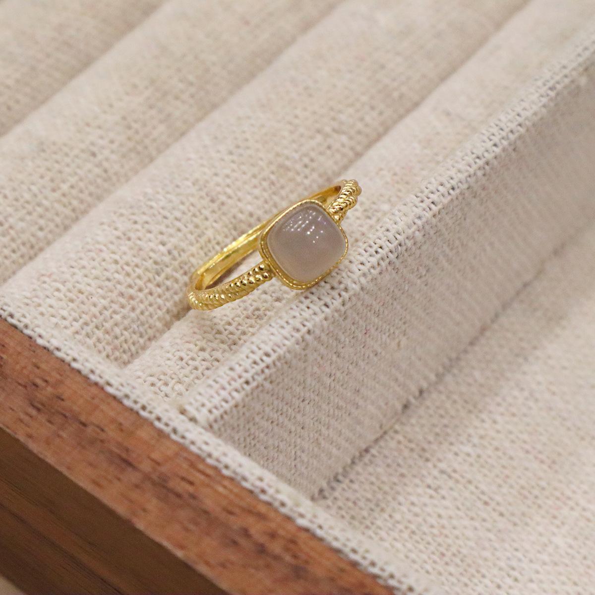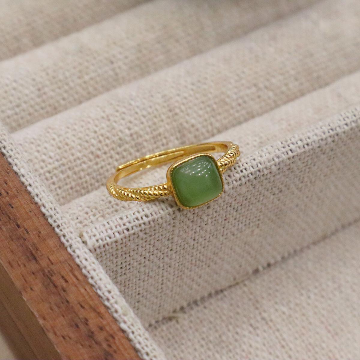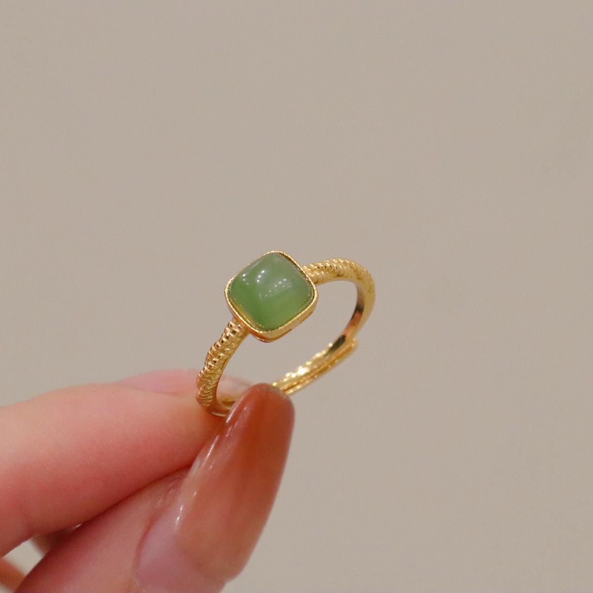 Nuevo anillo de jade hetiano natural de estilo chino, anillo gris púrpura ahumado, anillo de jade cuadrado, anillo de plata esterlina con azúcar cuadrado pequeño de estilo nacional