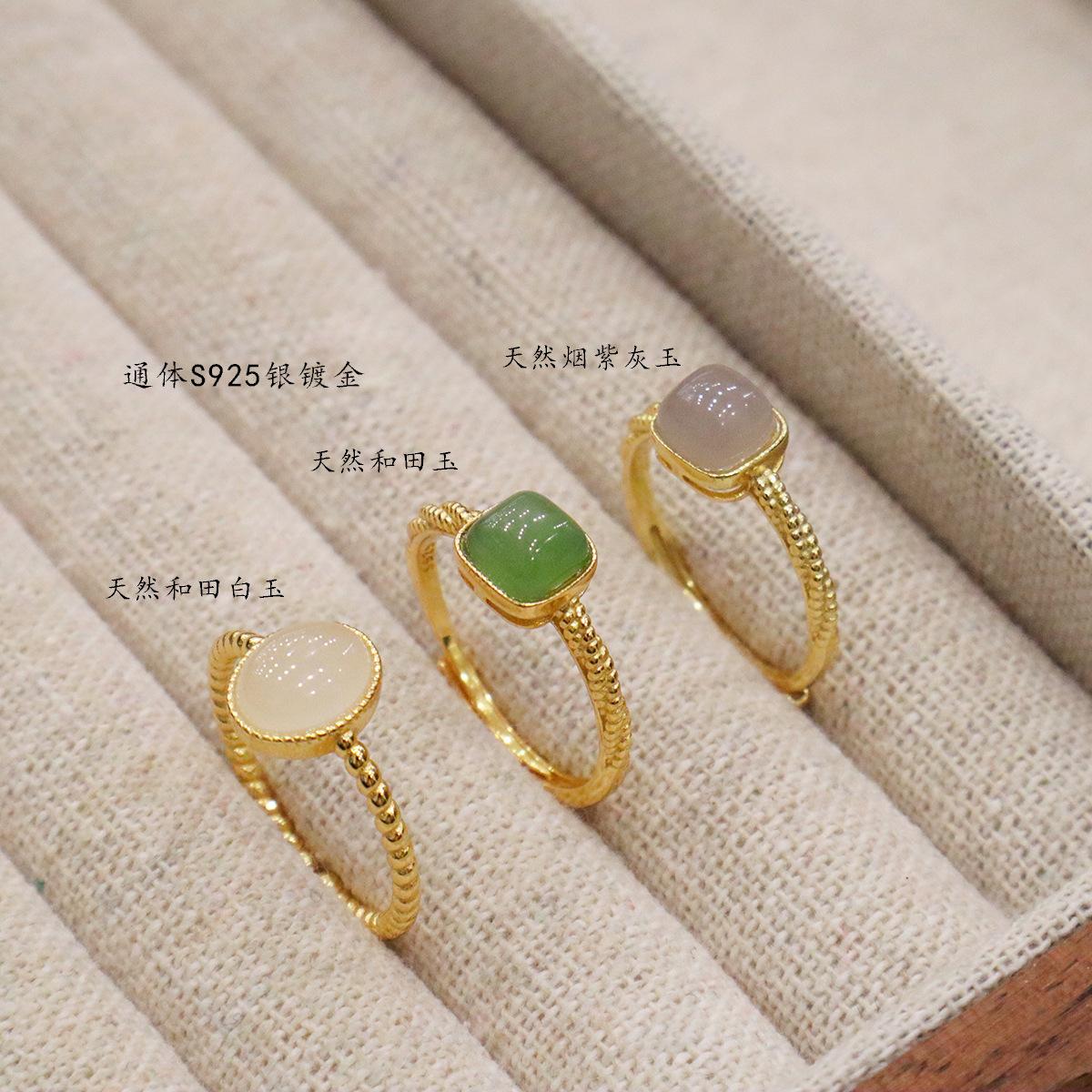 S925 sterling silver hetian jade ring, S925 sterling silver hetian jade purple ring, S925 sterling silver Hotan white jade ring