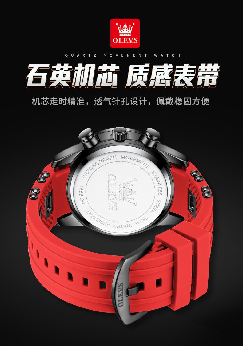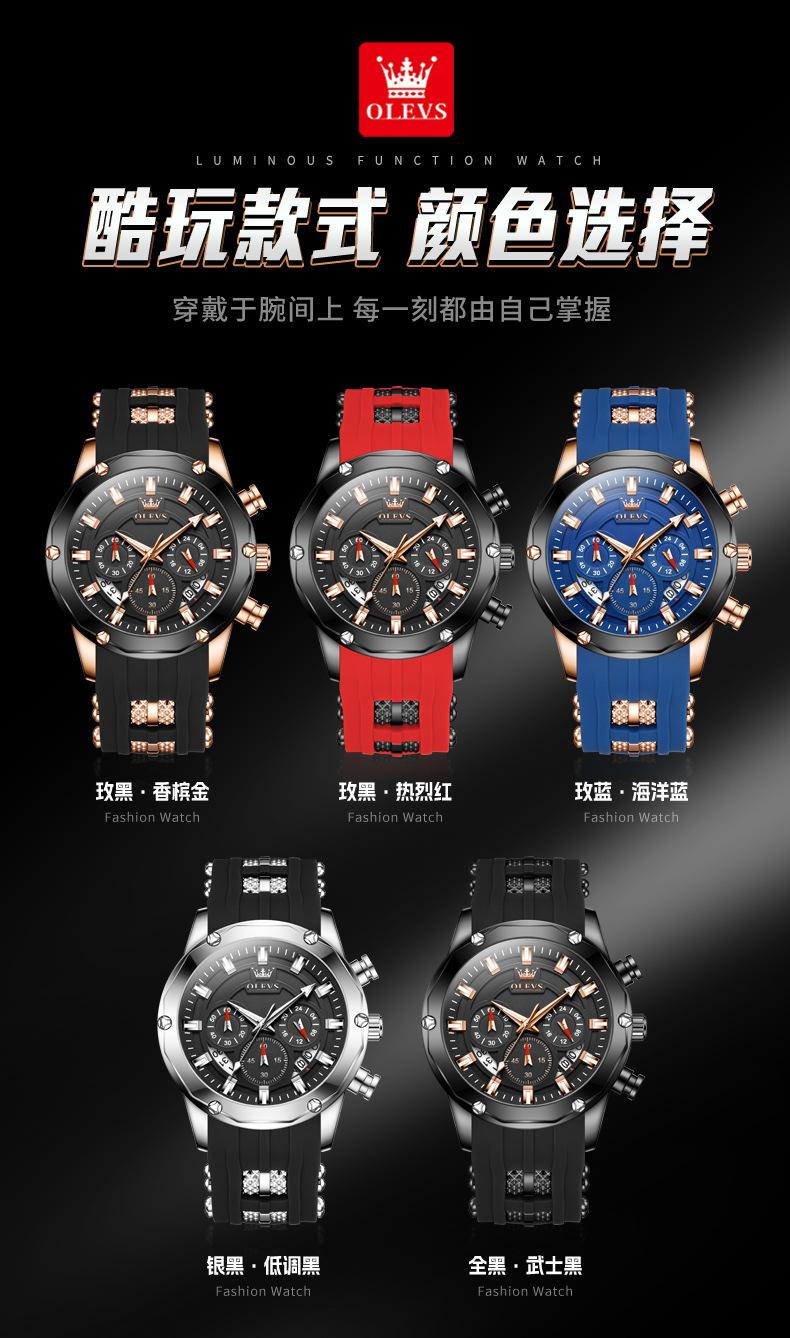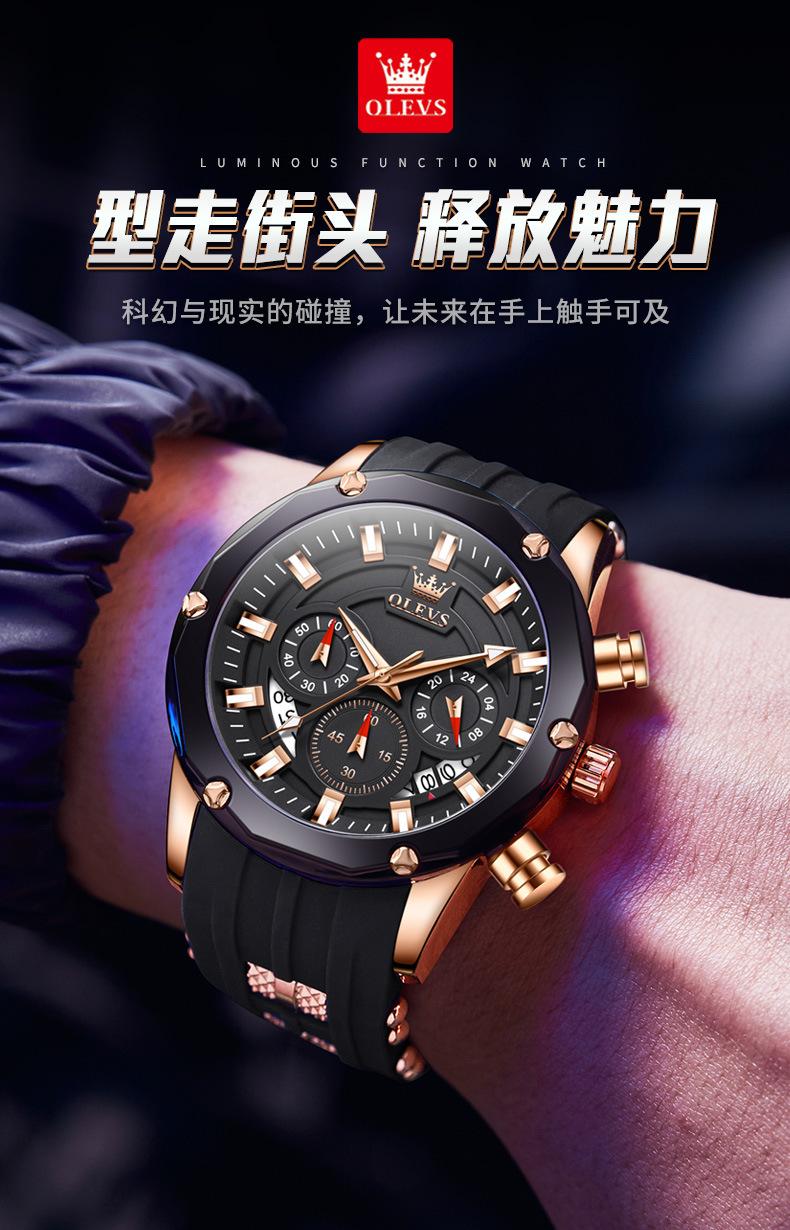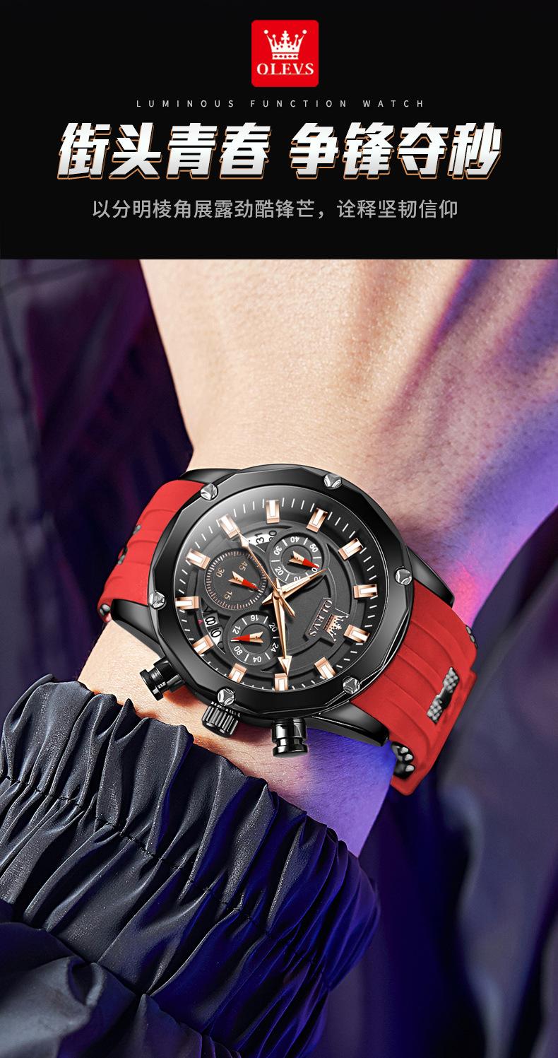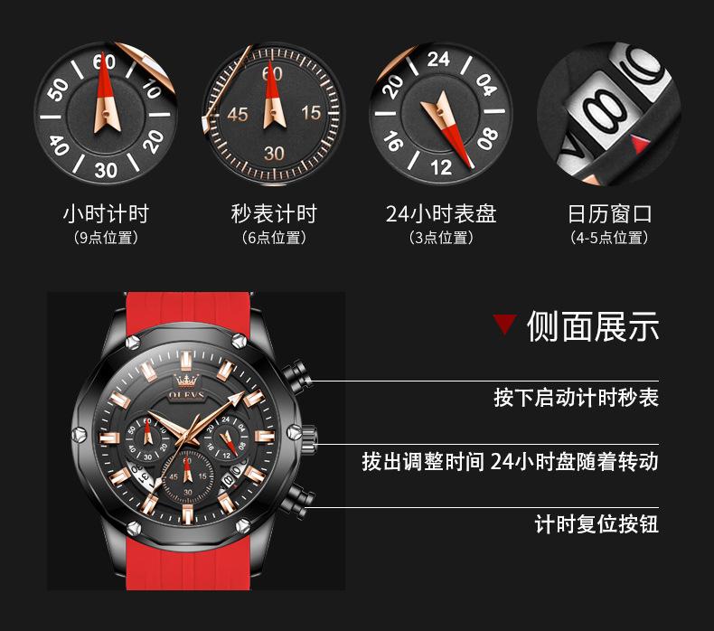 Un nuevo reloj de cuarzo multifuncional para el reloj de hombre con cinta de silicona de comercio exterior transfronterizo de la marca Oli.