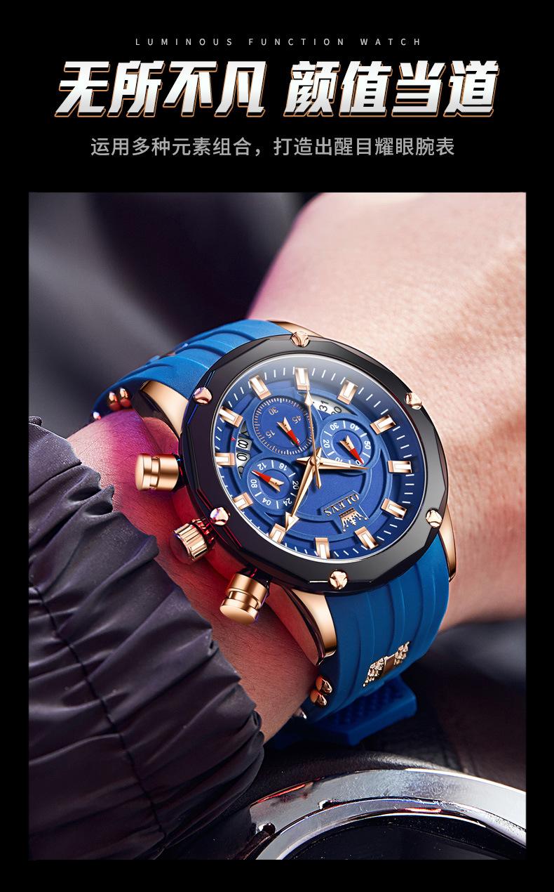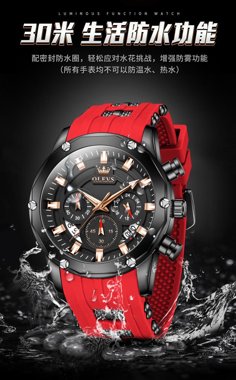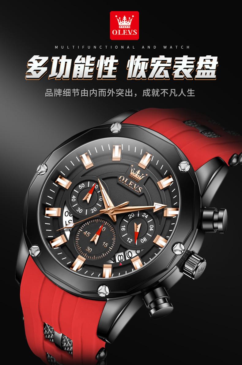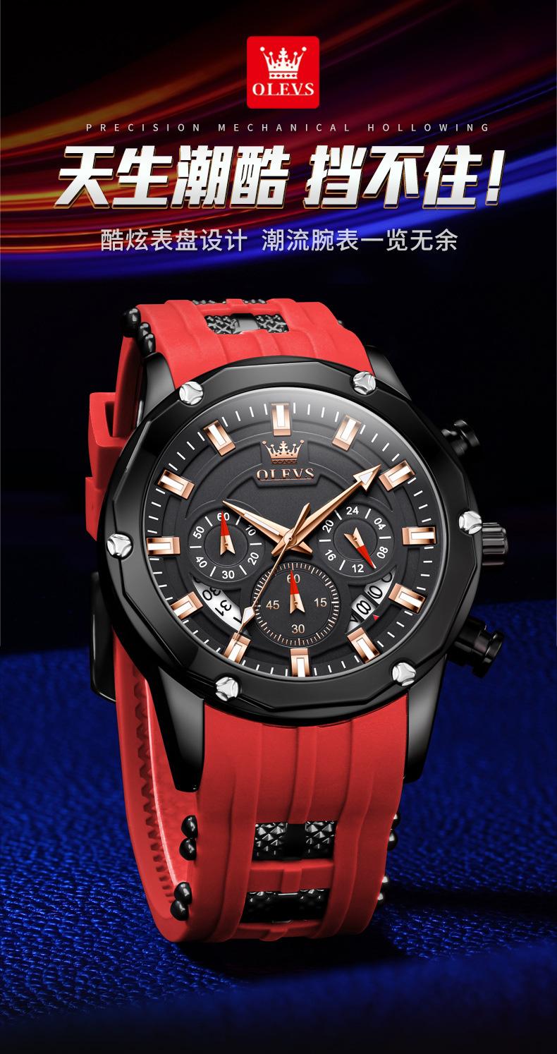 Un nuevo reloj de cuarzo multifuncional para el reloj de hombre con cinta de silicona de comercio exterior transfronterizo de la marca Oli.