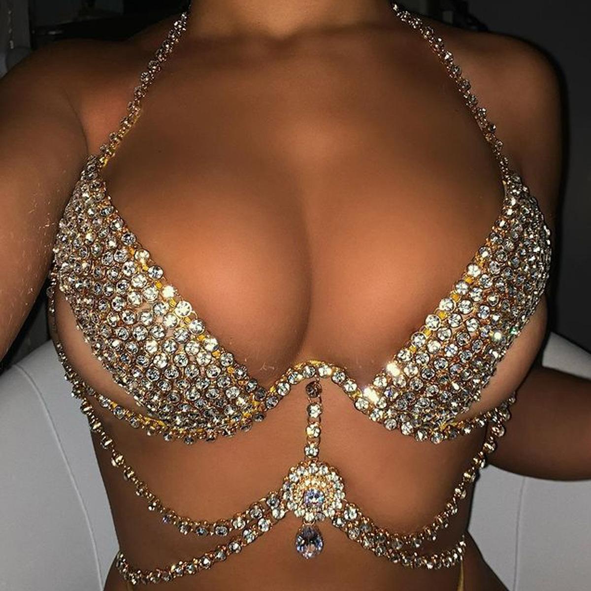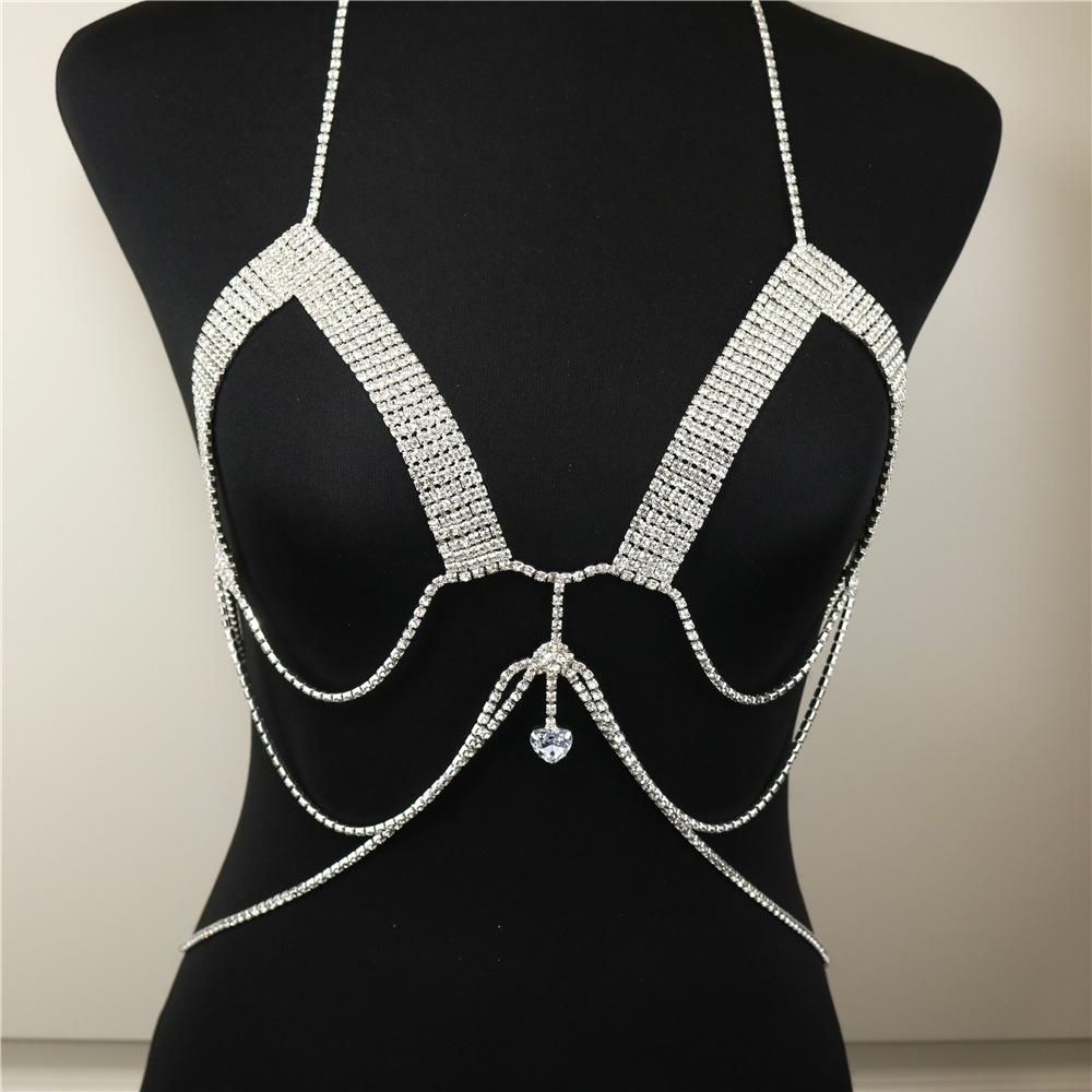ins lujo sexy cadena de pecho de diamantes de imitación moda europea y americana club nocturno cadena de cuerpo de diamantes completa accesorios transfronterizos cadena de cuerpo