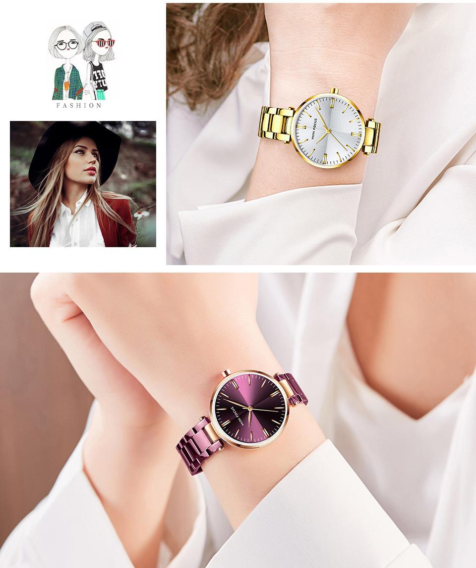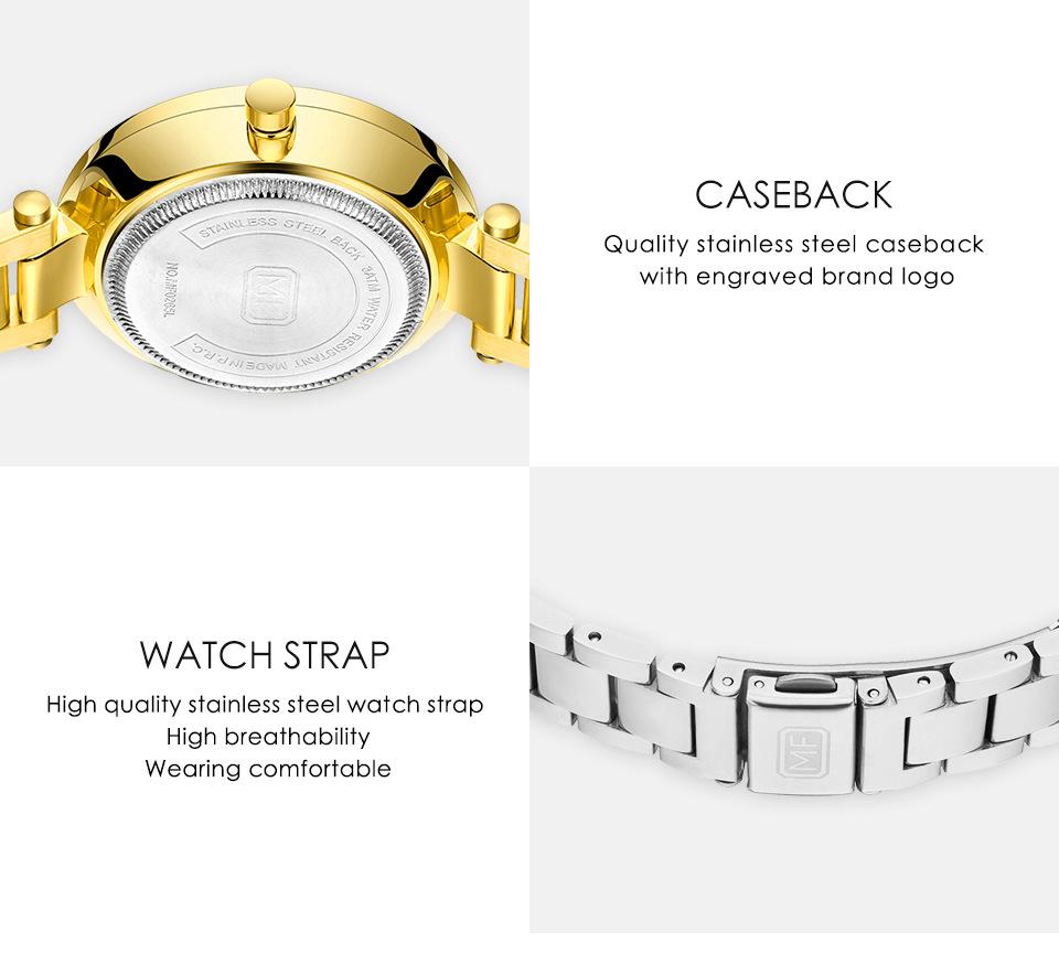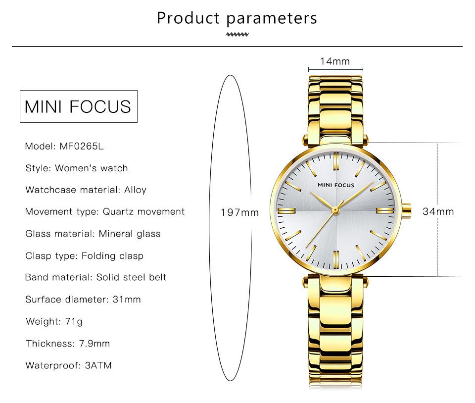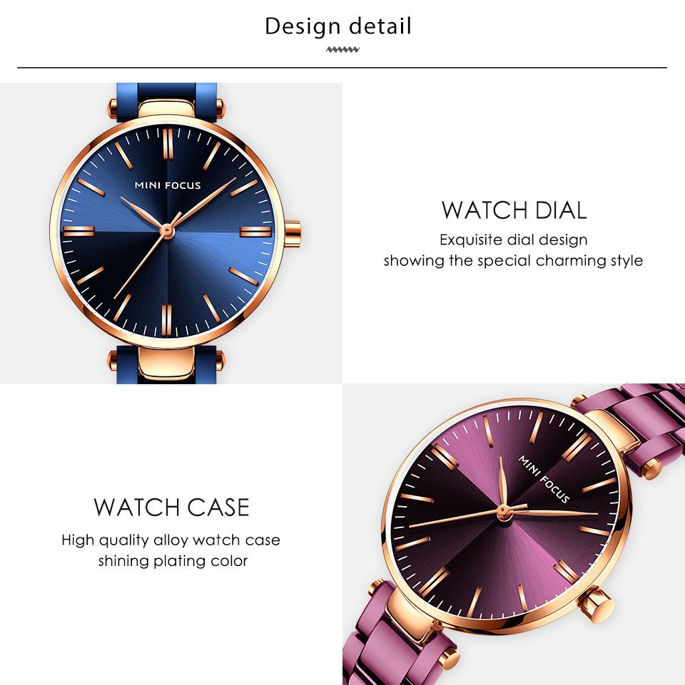 Compra Reloj de pulsera MINI FOCUS para mujer, de negocios, de moda, con movimiento japonés, resistente al agua, con patrón solar, correa de acero inoxidable 0265L al por mayor en Joom.pro