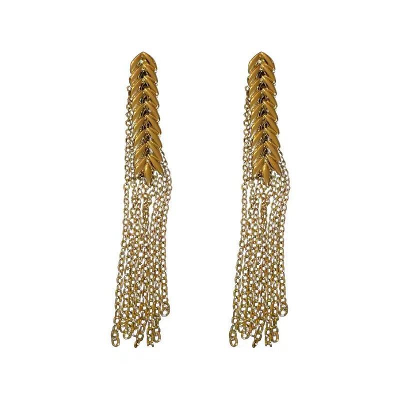 Pendientes largos con borlas de trigo, estilo europeo y americano, de metal, con diseño de nicho de aguja plateada, pendientes de temperamento, nuevos pendientes de moda para mujer