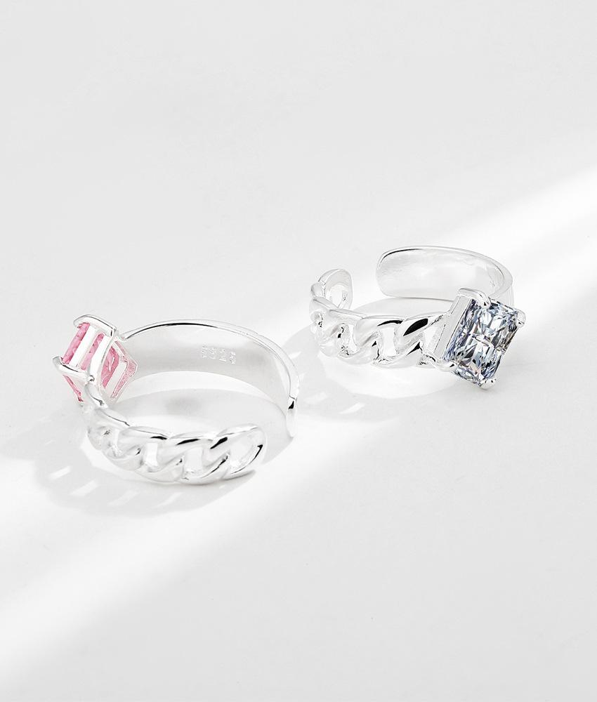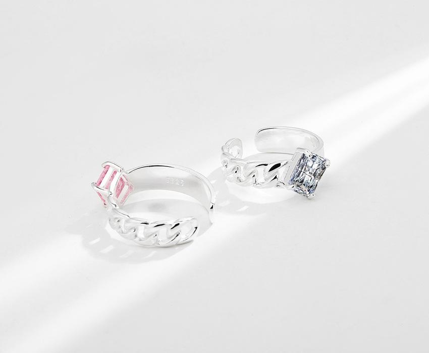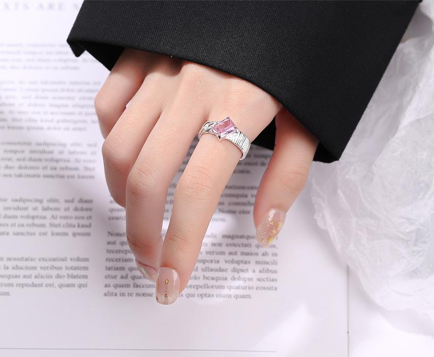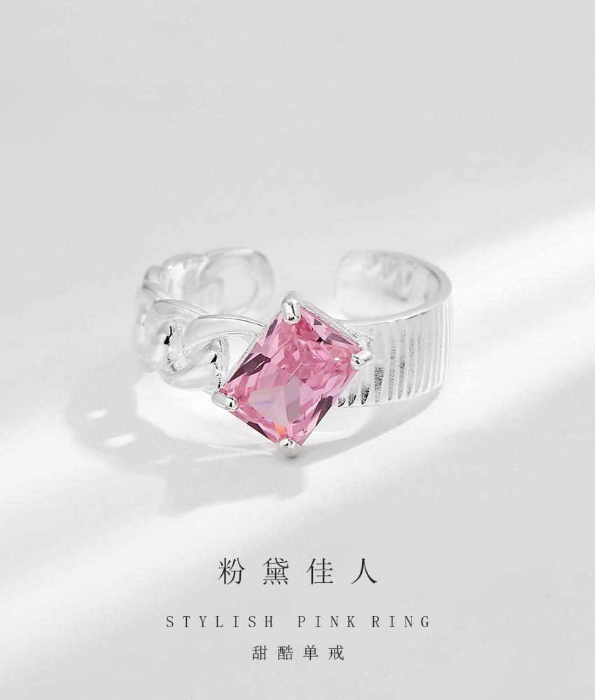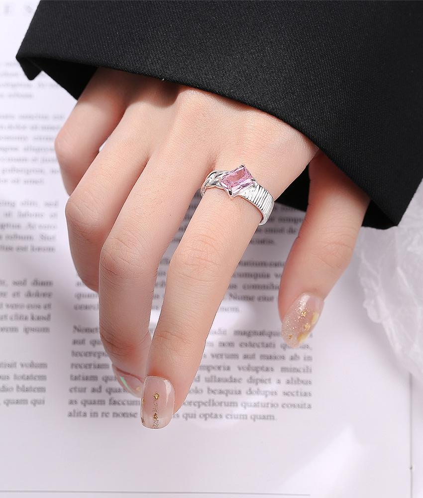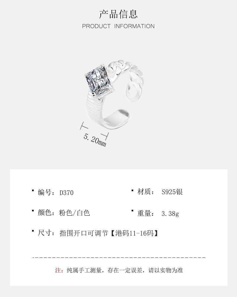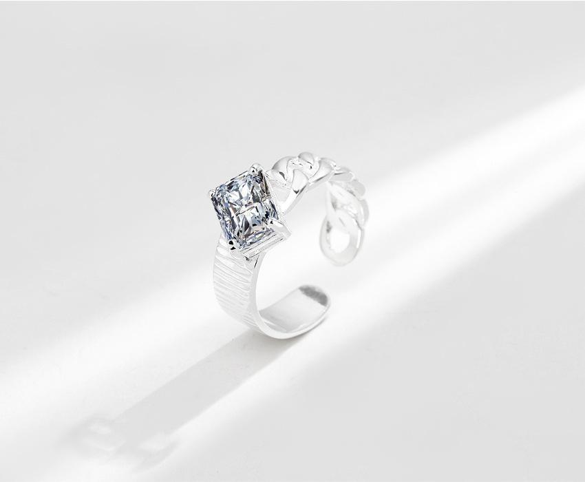 Compra Anillo de plata de ley S925 con diseño de nicho coreano INS, elegante, con circonita cuadrada que combina con todo, ligero y de lujo, abierto para mujer. al por mayor en Joom.pro