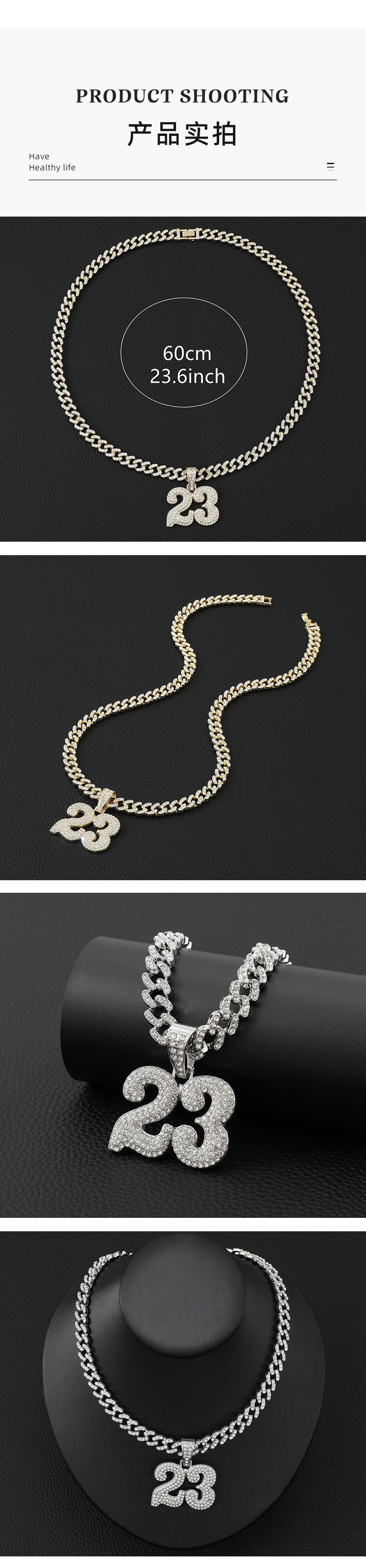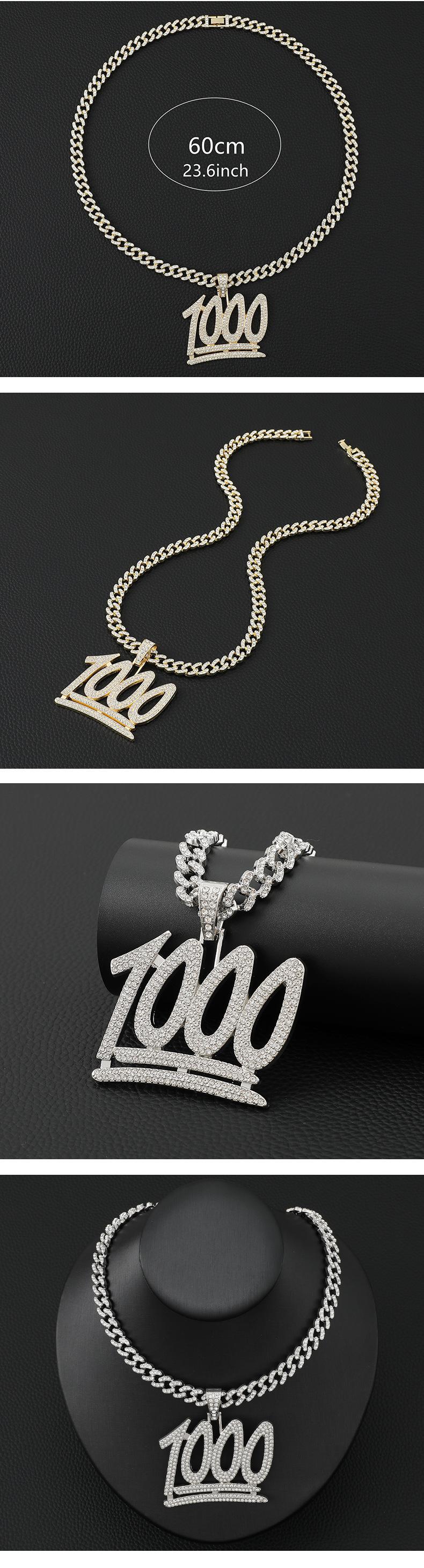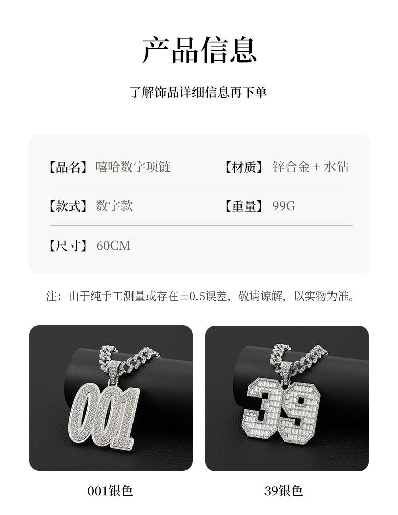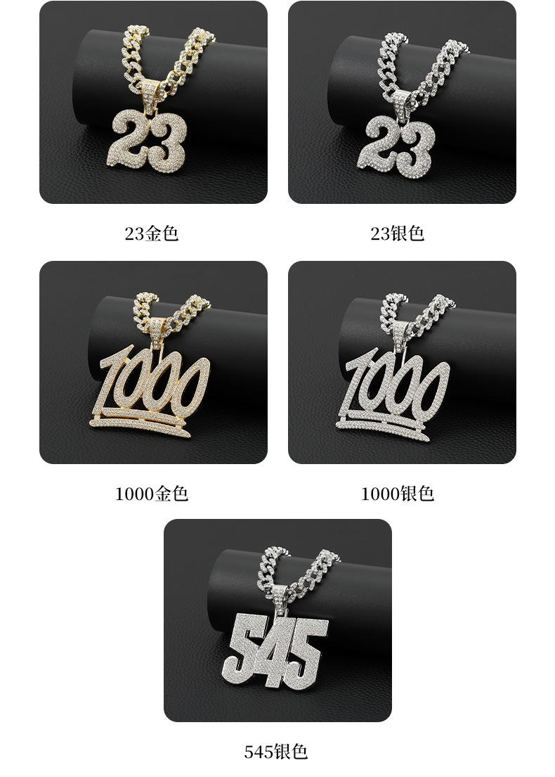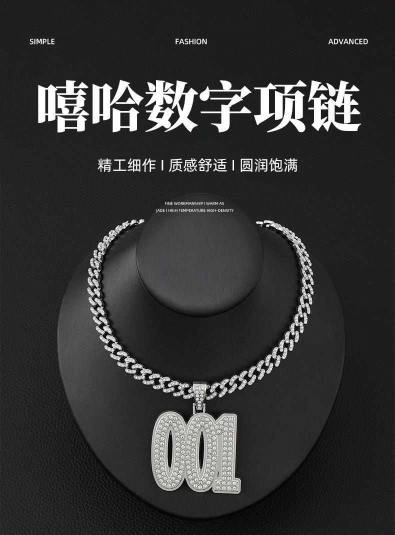 Collar de hip hop estilo callejero europeo y americano para hombre, diseño Ins, cadena cubana de diamantes con números exagerados y colgante de diamantes completo, cadena de lana
