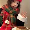 Bufanda de Invierno para Mujer Coreana Versátil Navideña de Diamantes a Cuadros Bufanda Gruesa Tejida de Doble Cara Cálida para Mujer