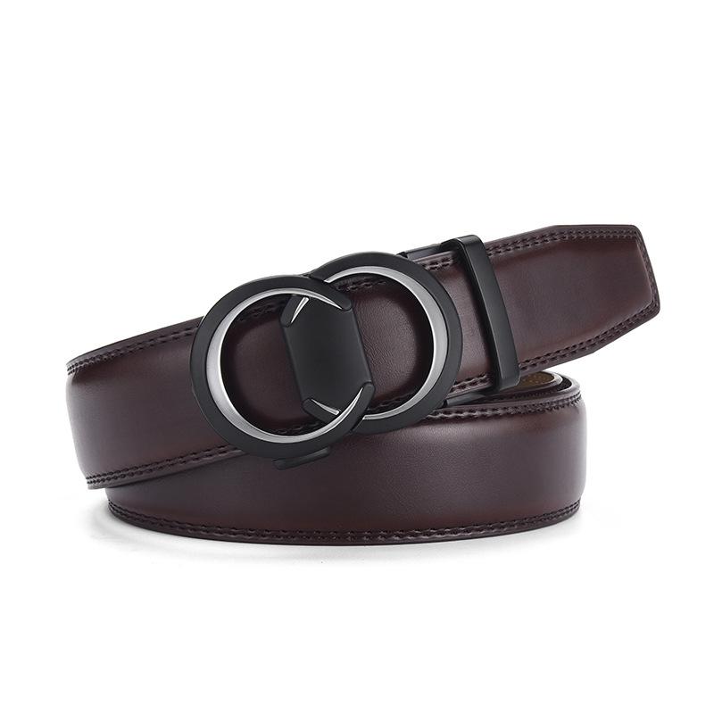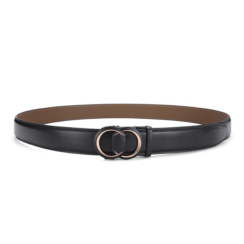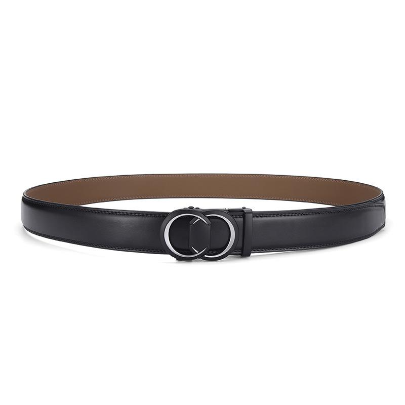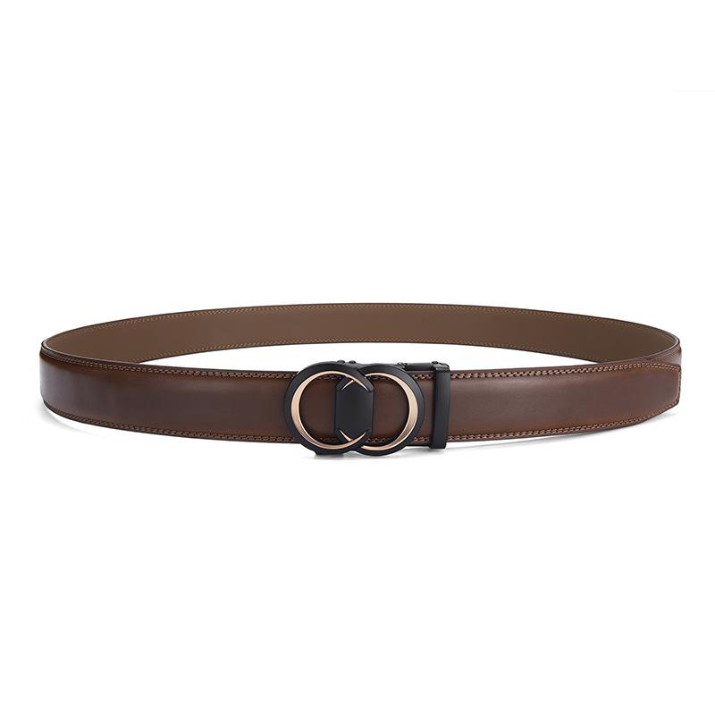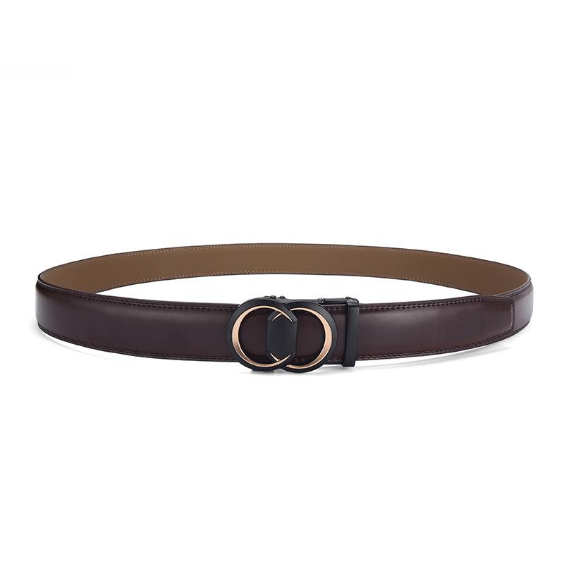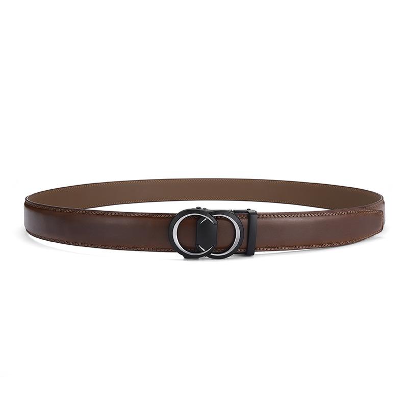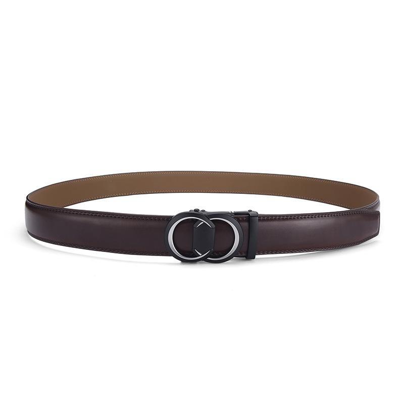 Cinturón de hombre con hebilla automática, hebilla de piel de vaca con letra doble C, 3,5 cm, liso, informal, para negocios.