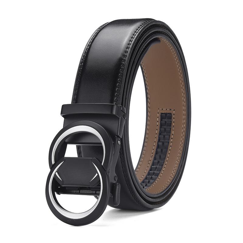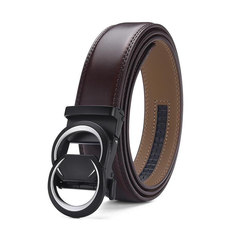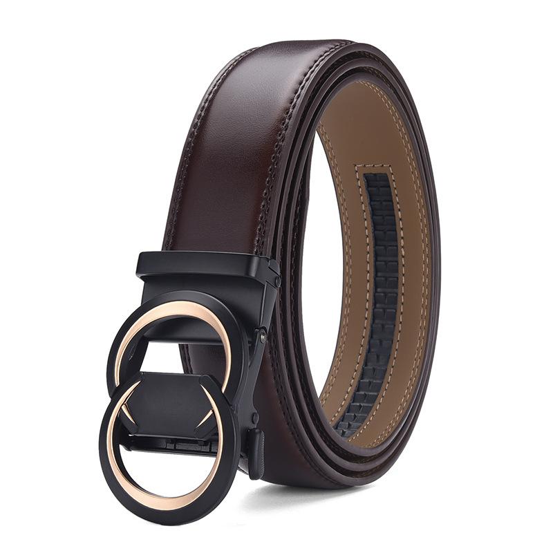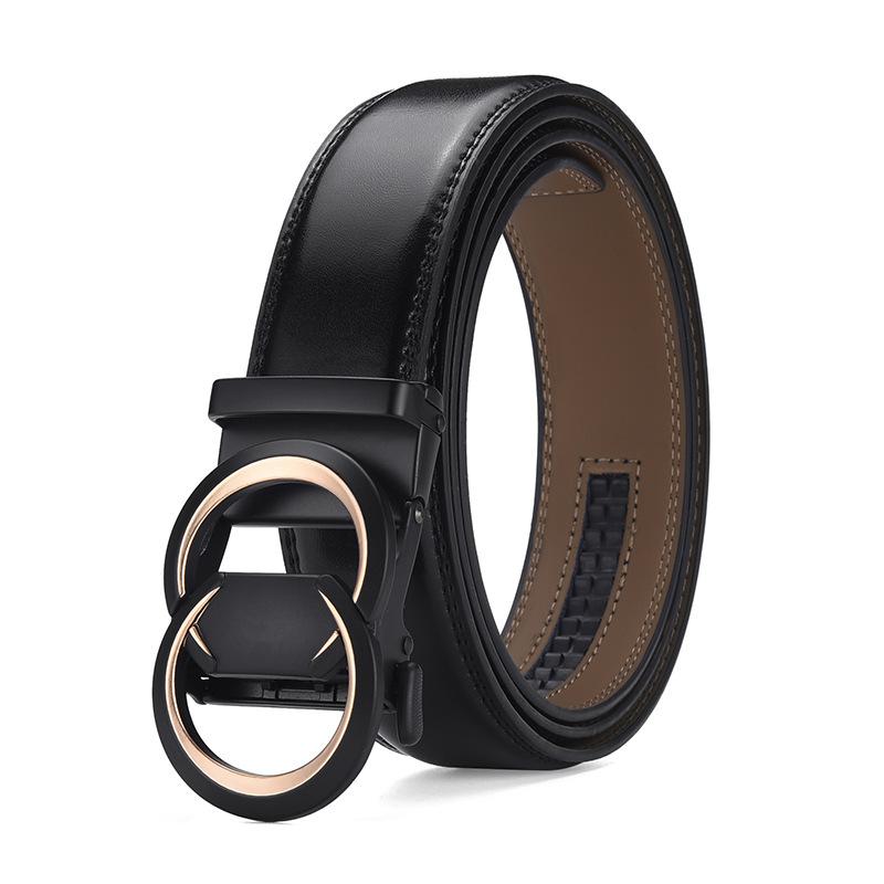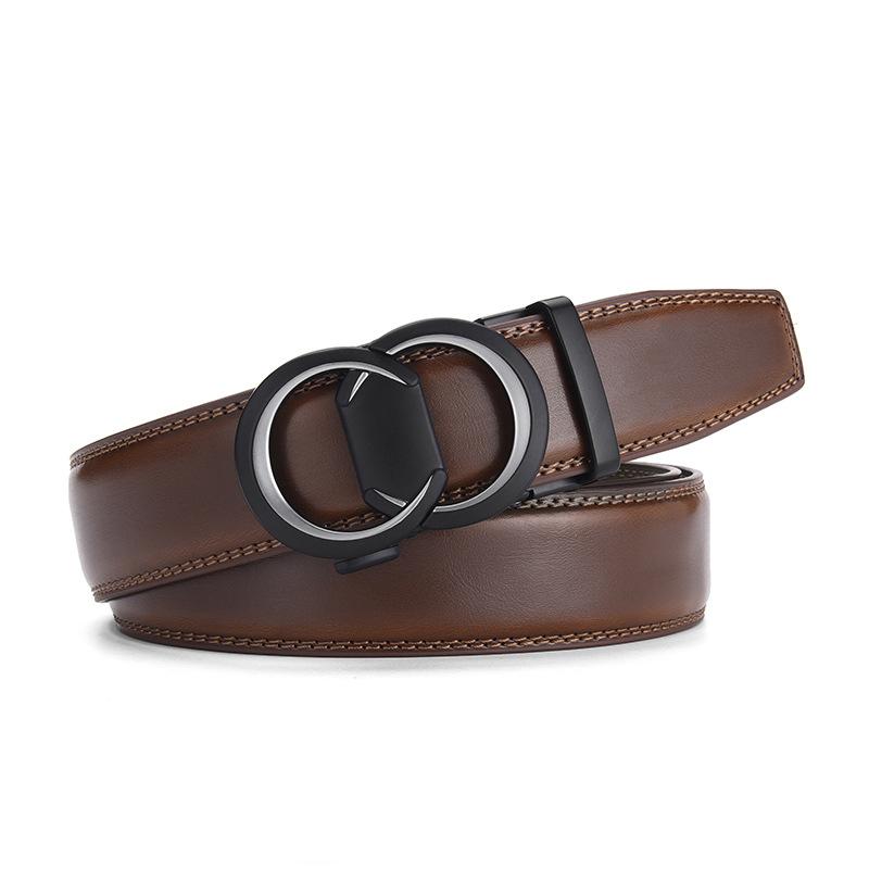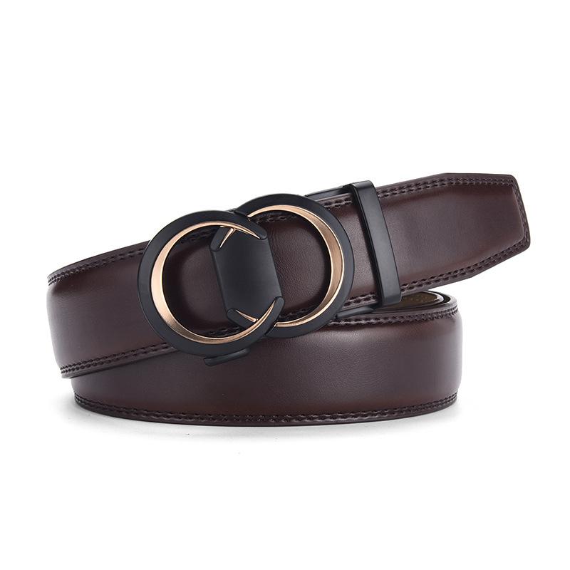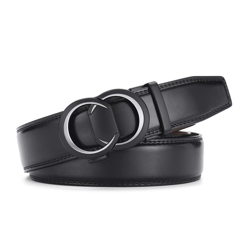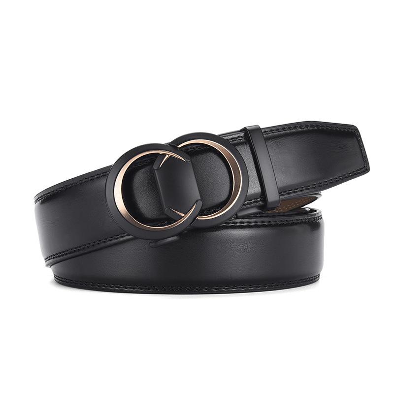 Cinturón de hombre con hebilla automática, hebilla de piel de vaca con letra doble C, 3,5 cm, liso, informal, para negocios.