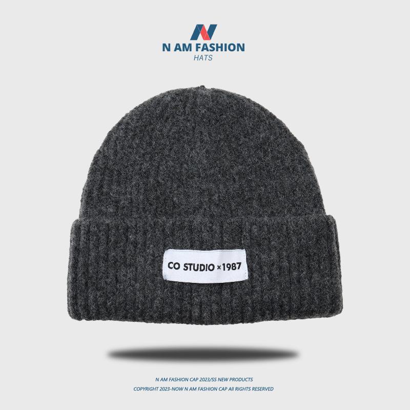 DM826 long label CO1987 wool hat Black, DM826 long label CO1987 wool hat dark gray, DM826 long label CO1987 wo...