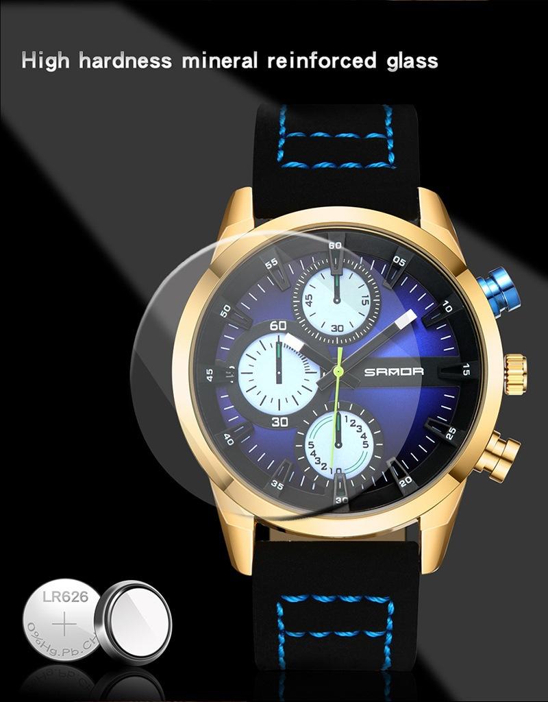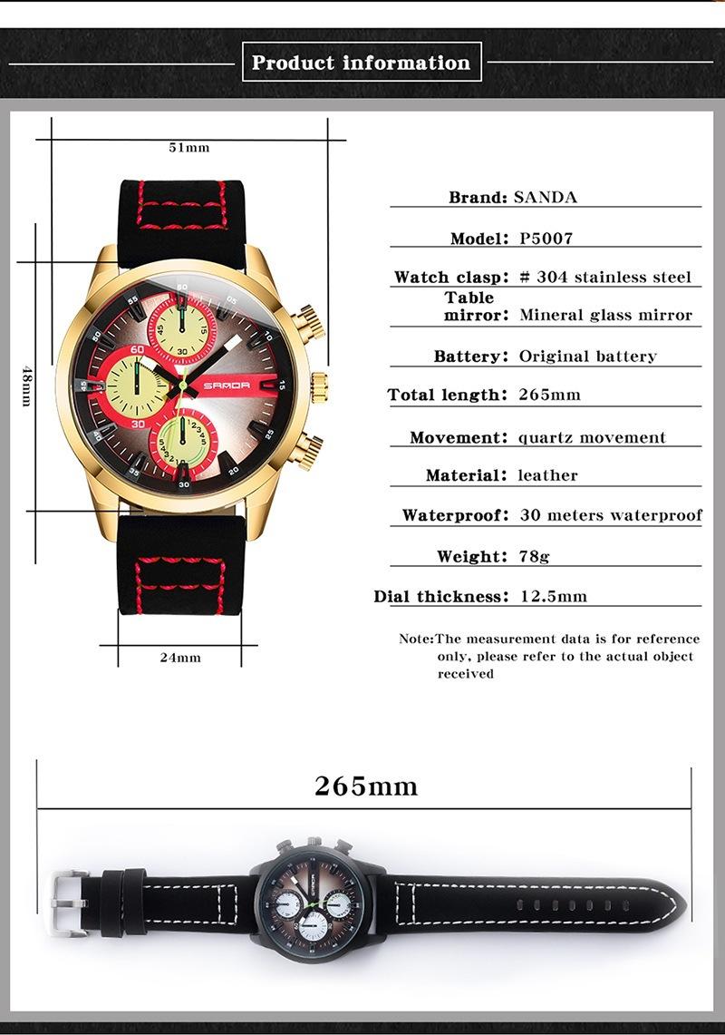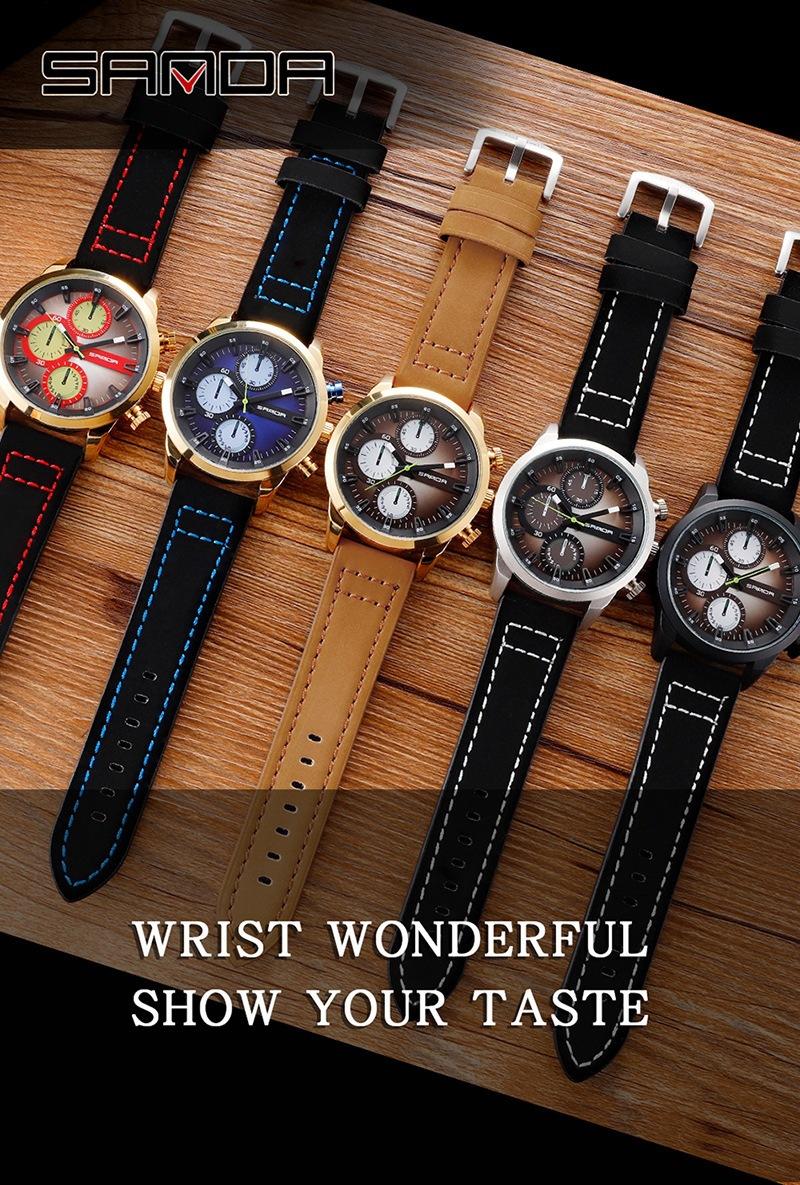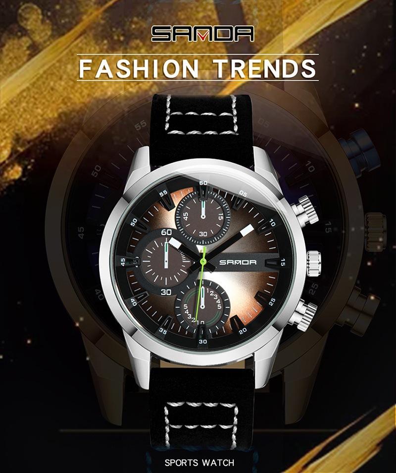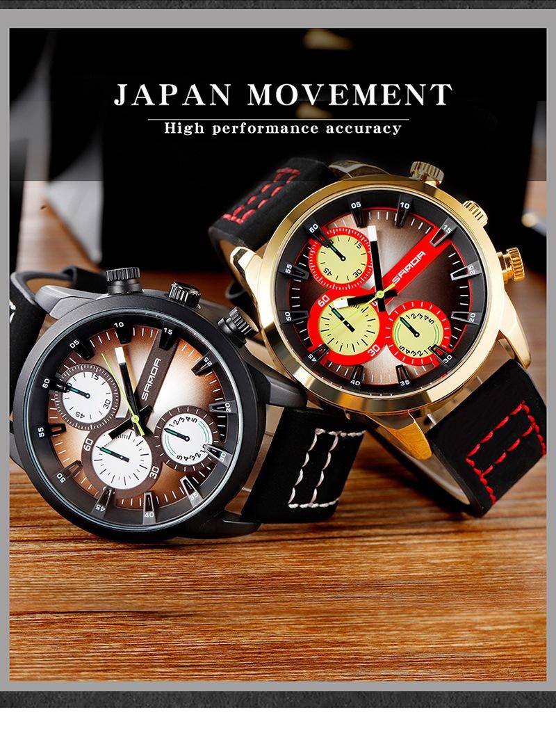 Reloj de negocios SANDA de moda de gran venta para hombre, con tres esferas y seis pines, deportivo, resistente al agua, reloj de cuarzo para estudiantes