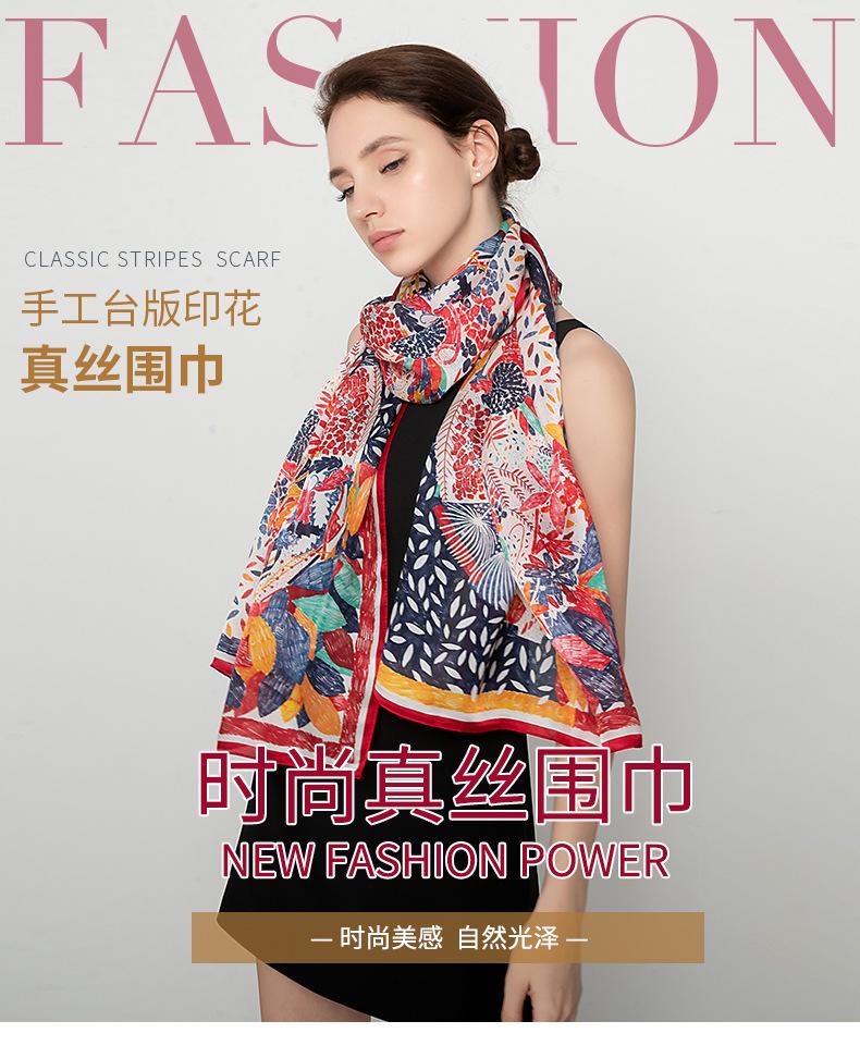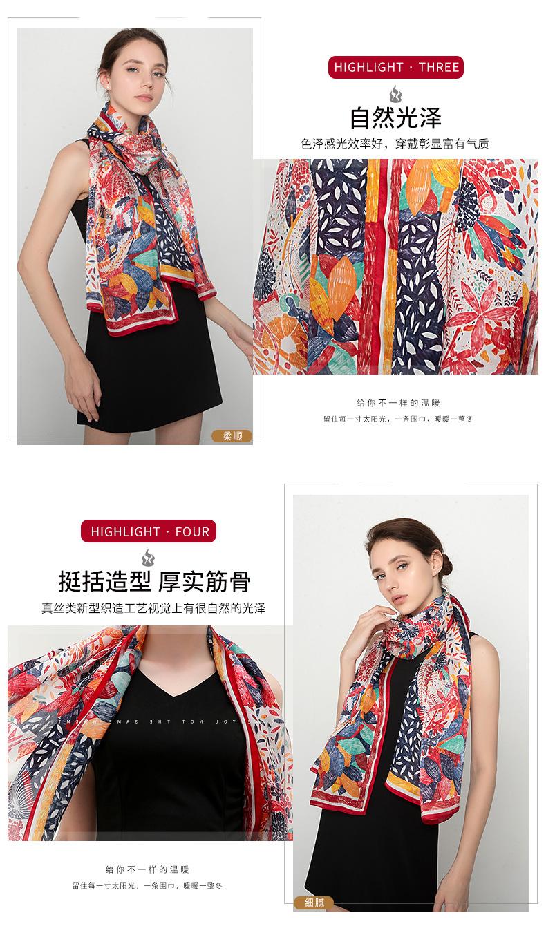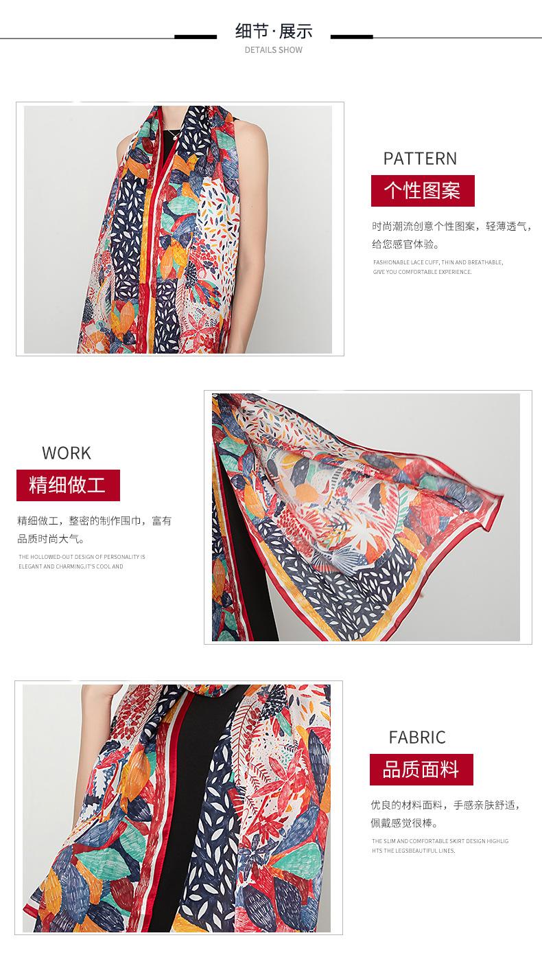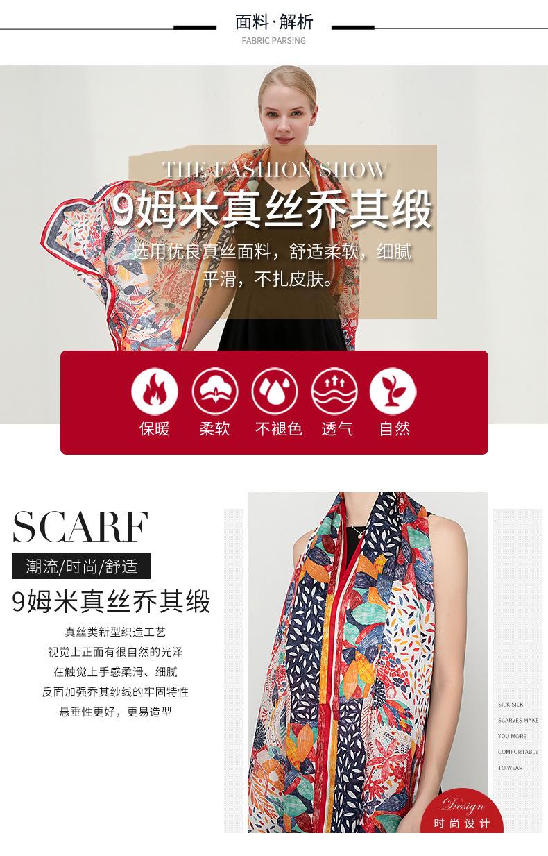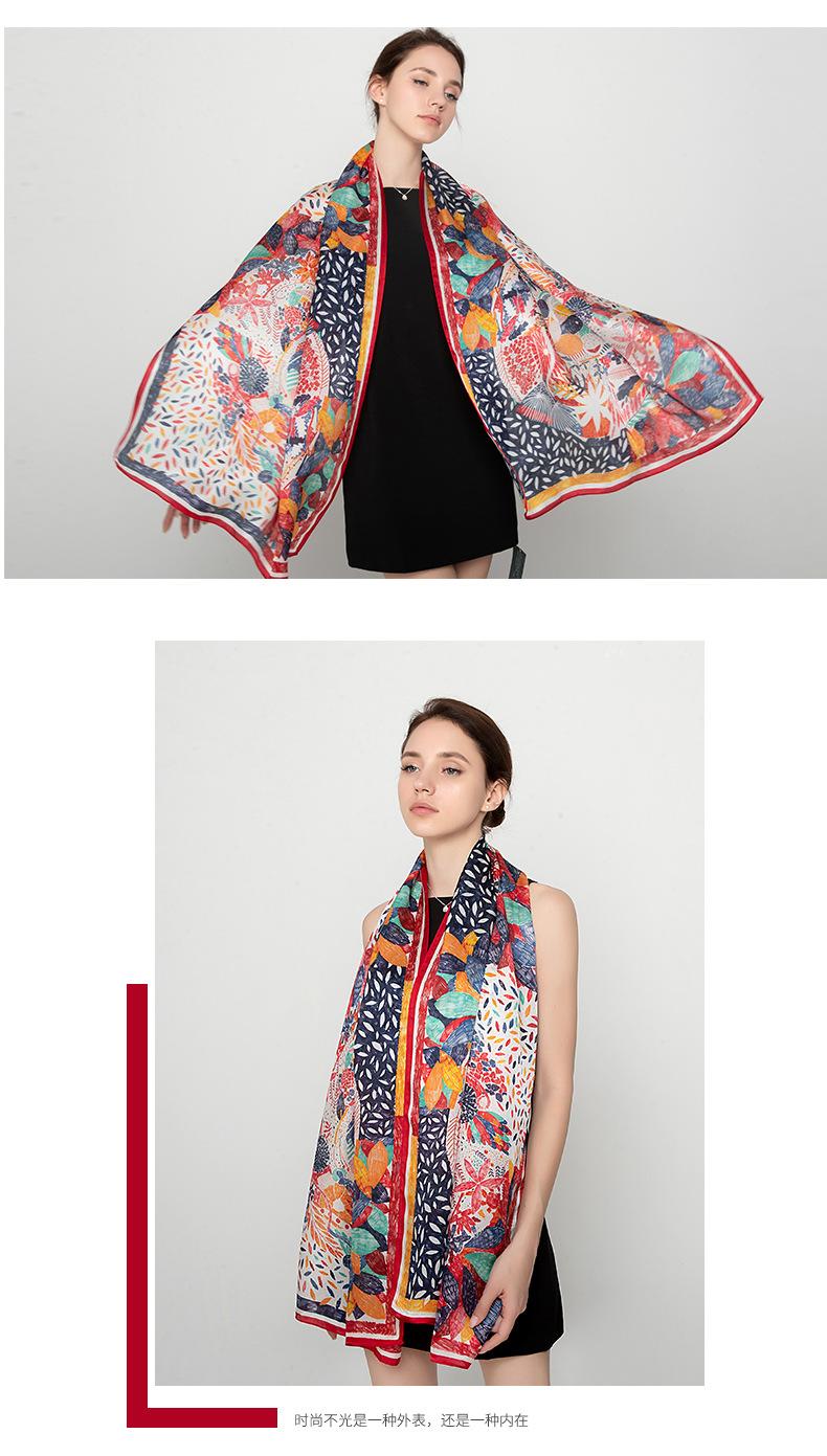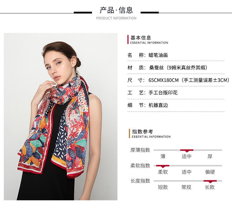 Moda de Primavera y Verano Nueva Bufanda Estampada Delicado Chal de Seda de Morera Pintura al Óleo Seda Bufanda de Satén Simple para Mujer