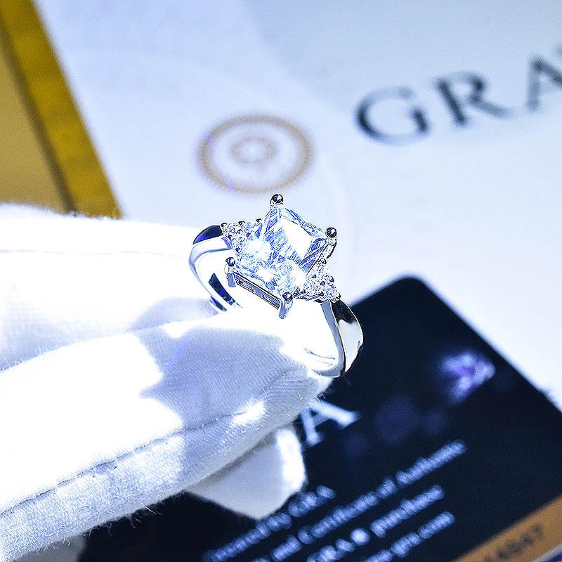 Anillo de diamantes cuadrados Princesa incrustados populares de TikTok en vivo imitación diamante color D importado americano anillo femenino boca en vivo