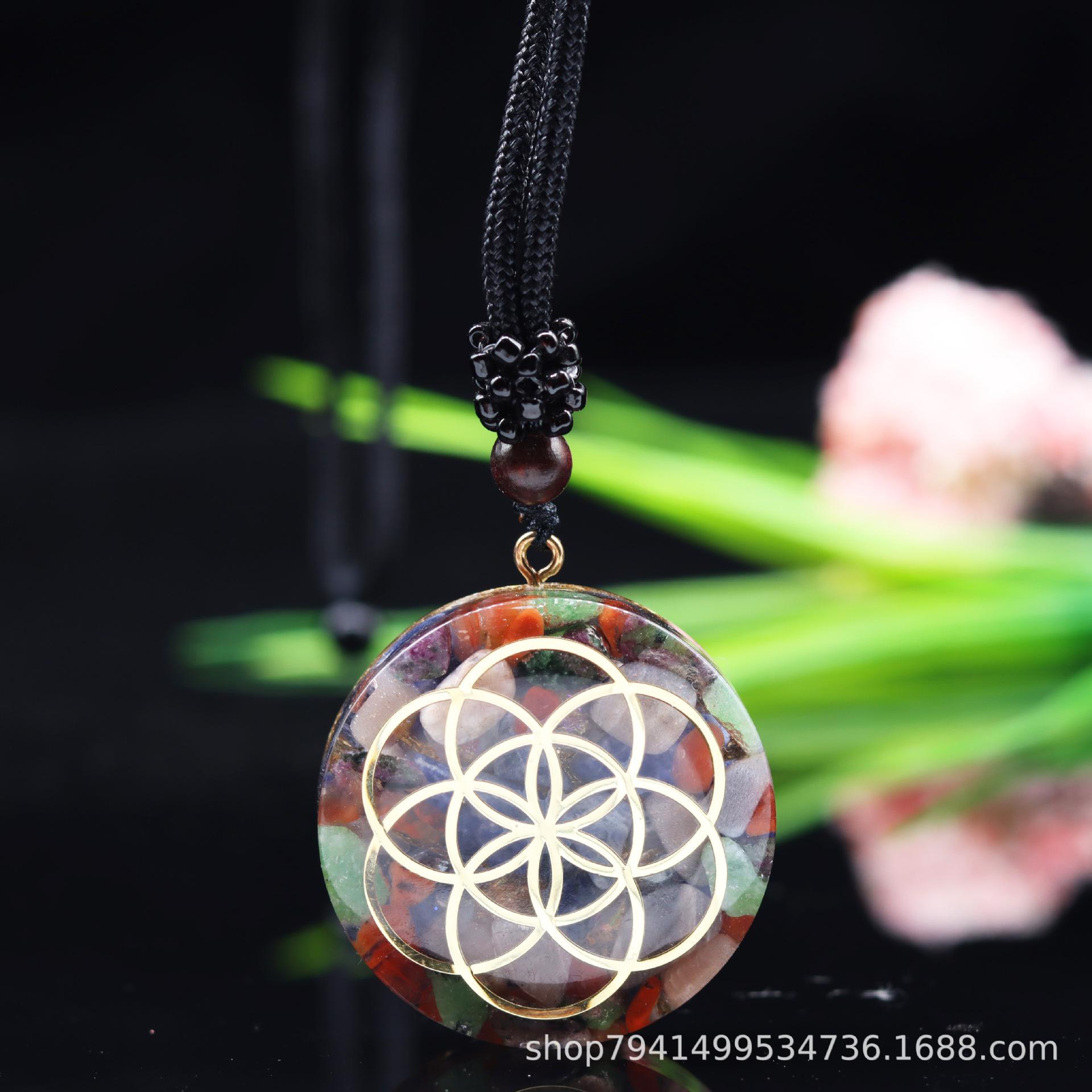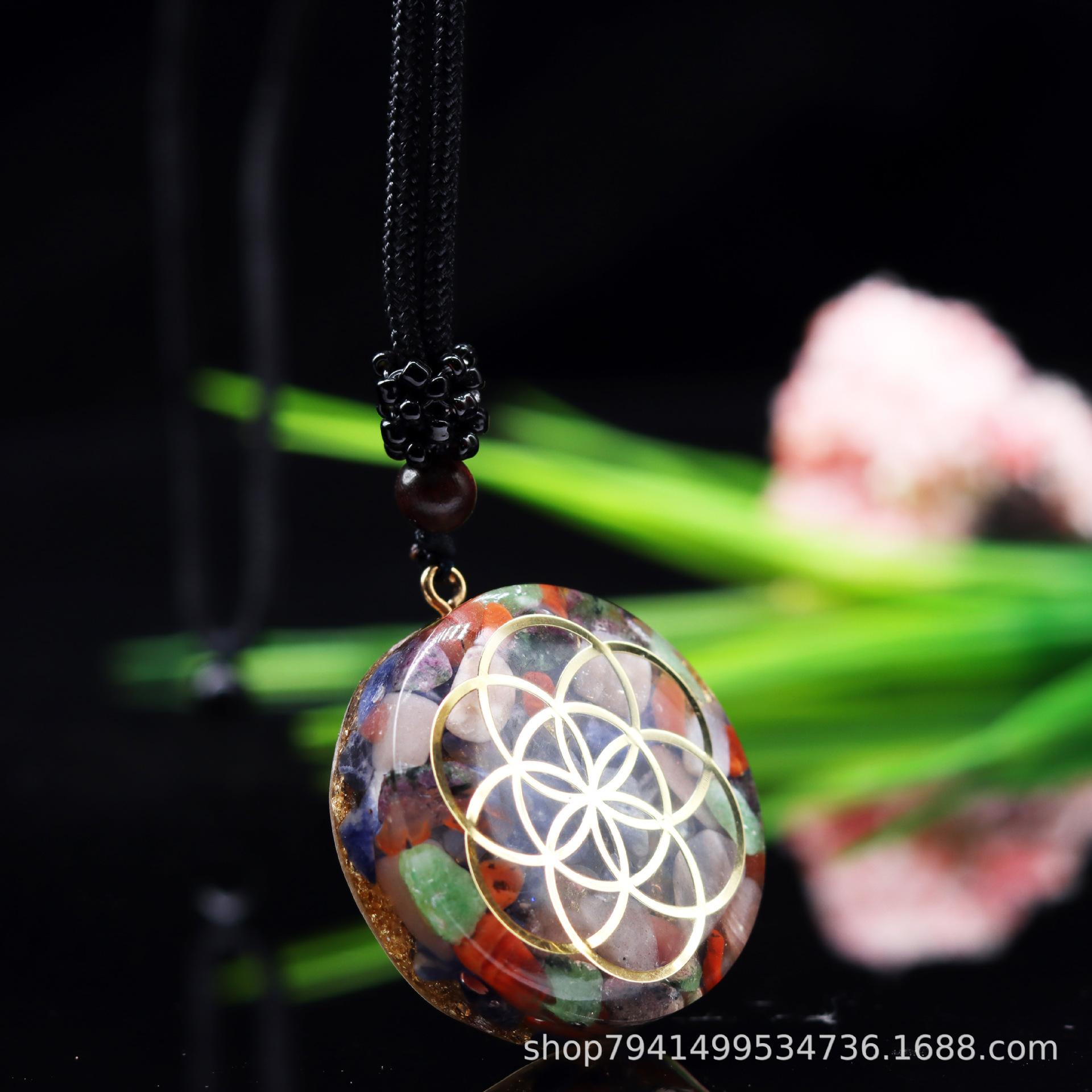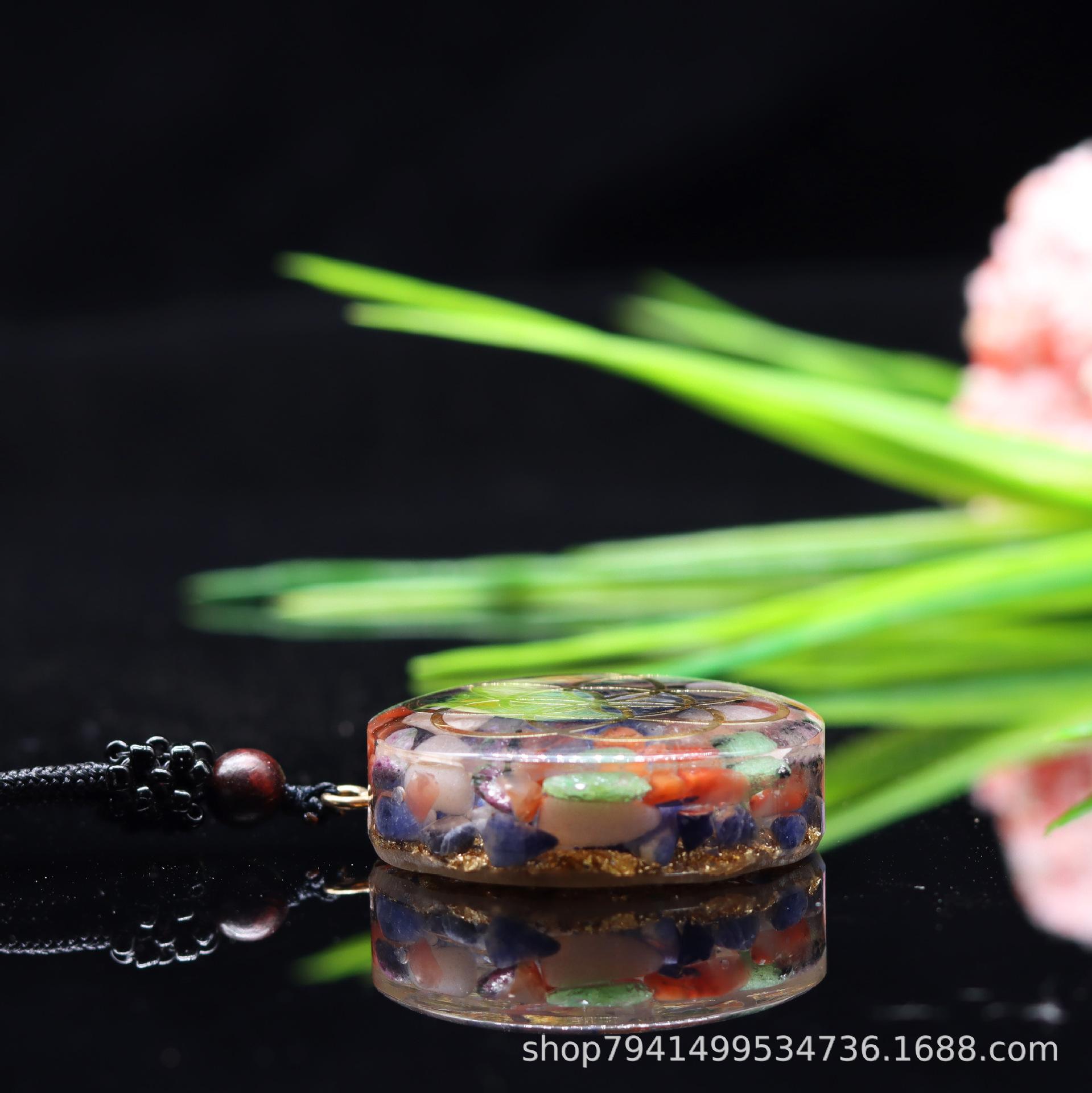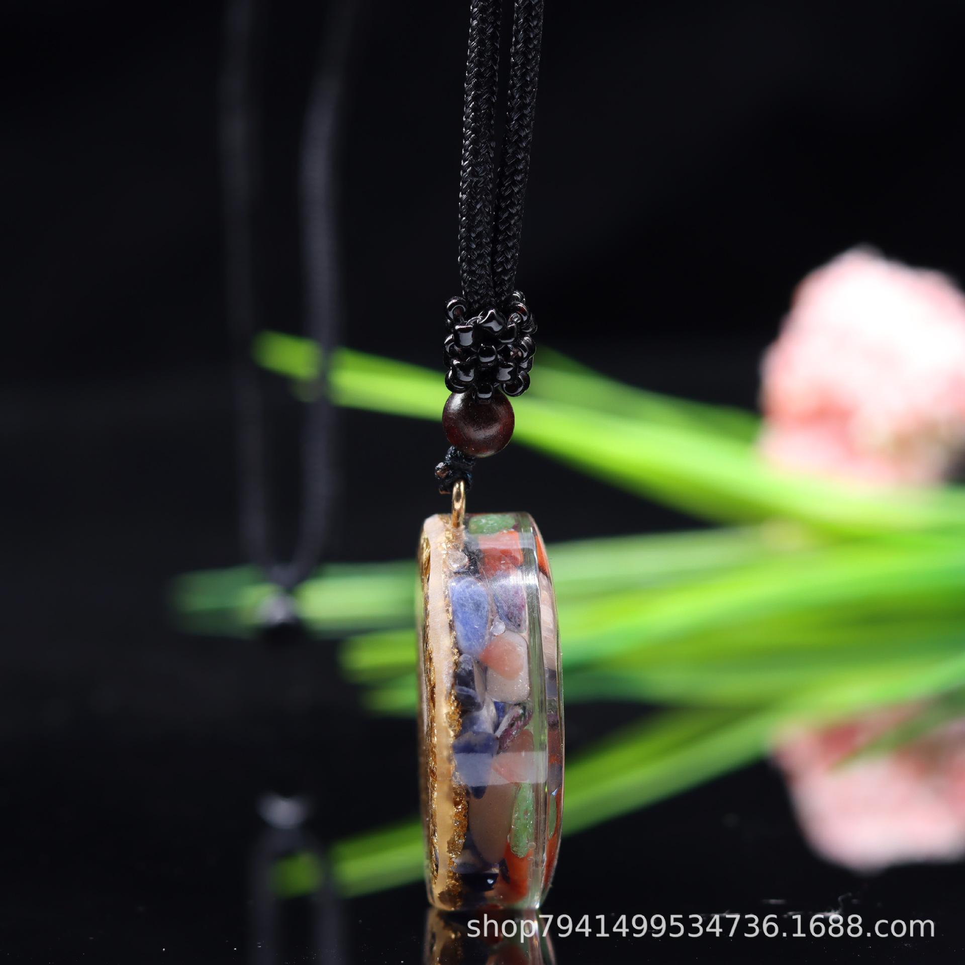 Colgante de collar popular transfronterizo, joyería de grava de cristal natural, productos de epoxi, chakarat colgante