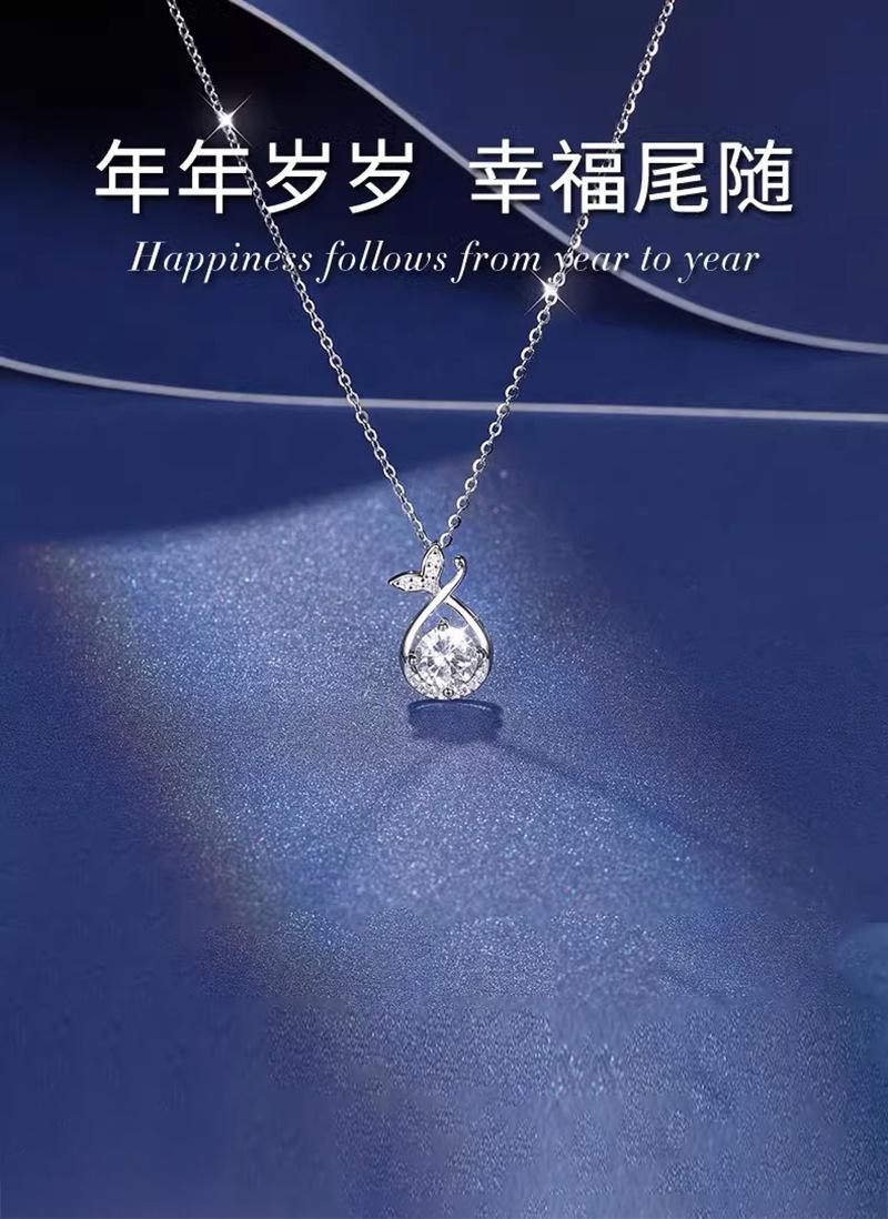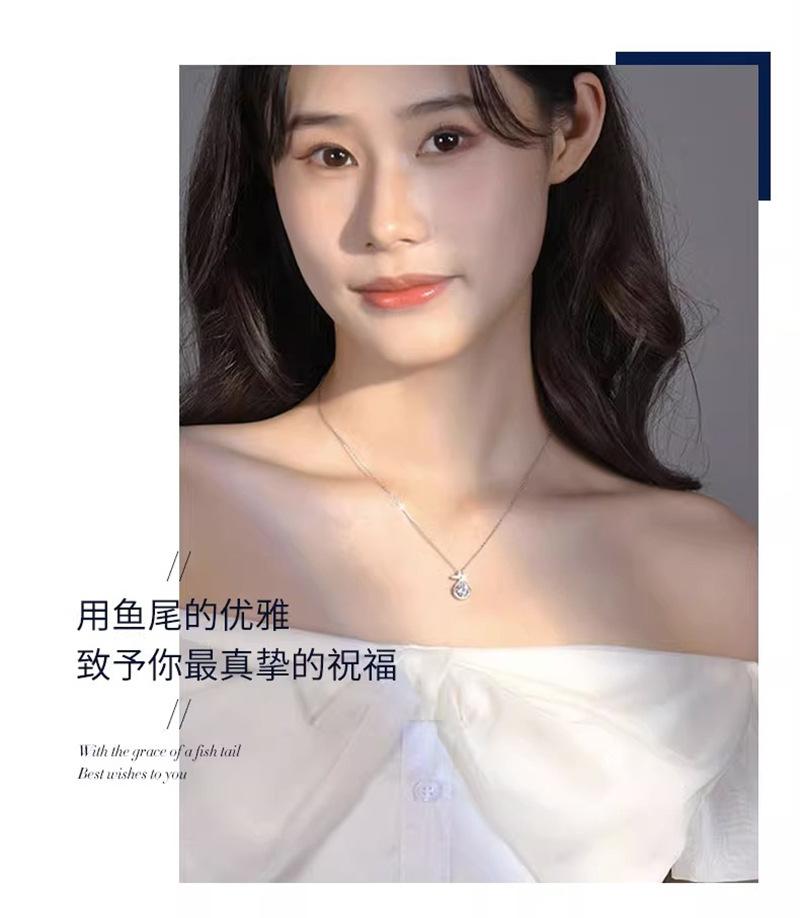Collar de cola de pez de circón para mujer, diseño de nicho de lujo ligero, sensación de por vida contigo, cadena de clavícula de acero inoxidable, temperamento ins, cadena fuerte