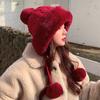 Compra Gorro Jersey de Algodón Cachemira para Mujer de Otoño e Invierno con Tres Pompones de Piel, Lindo Forrado de Polar y Grueso a Prueba de Frío y Cálido, Gorro Tejido de Color Puro al por mayor en Joom.pro