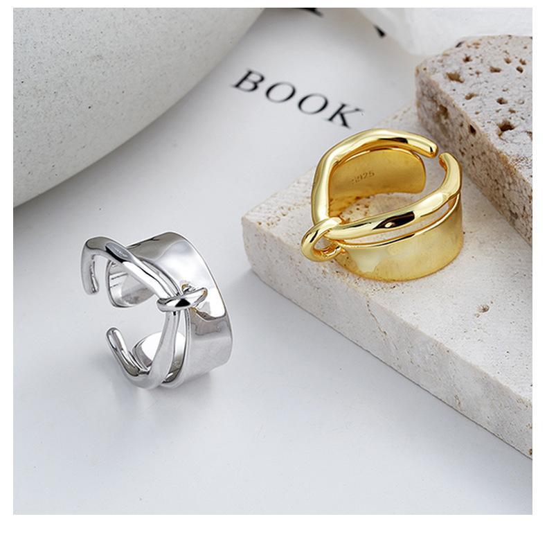 Compra Anillo Yunchao Xuan S925 de plata esterlina irregular brillante, anillo abierto de doble capa, estilo japonés coreano, anillo distintivo para mujer. al por mayor en Joom.pro