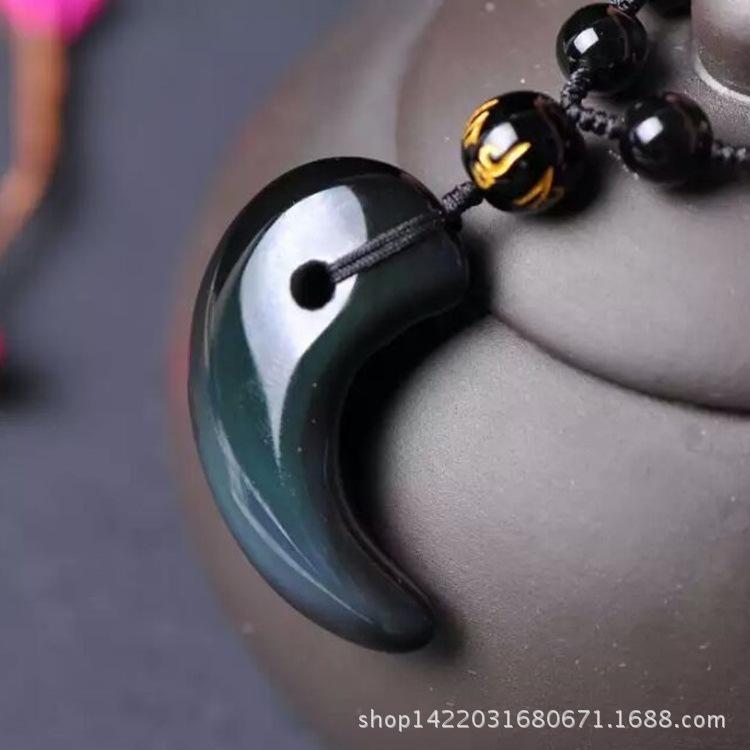 Obsidian jade hook without pendant rope, Obsidian jade hook with ordinary pendant rope, Obsidian jade hook wit...