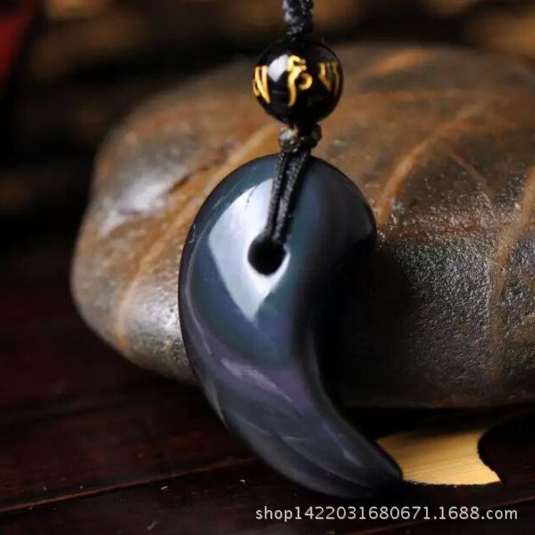 Colgante de jade obsidiana natural, colgante para amantes de la mascota, joyería al por mayor