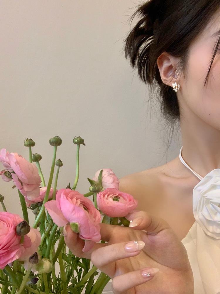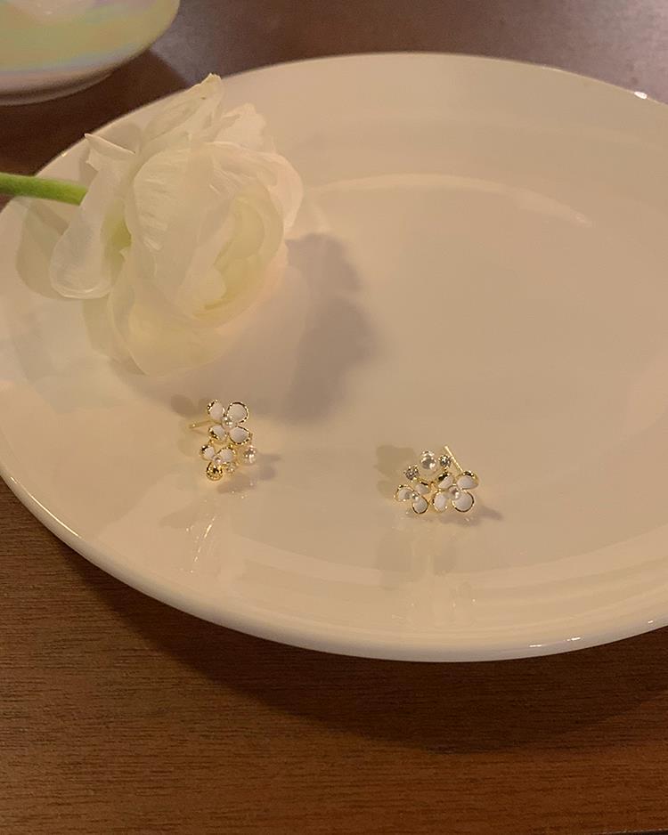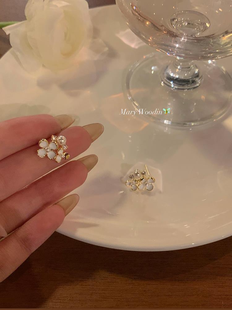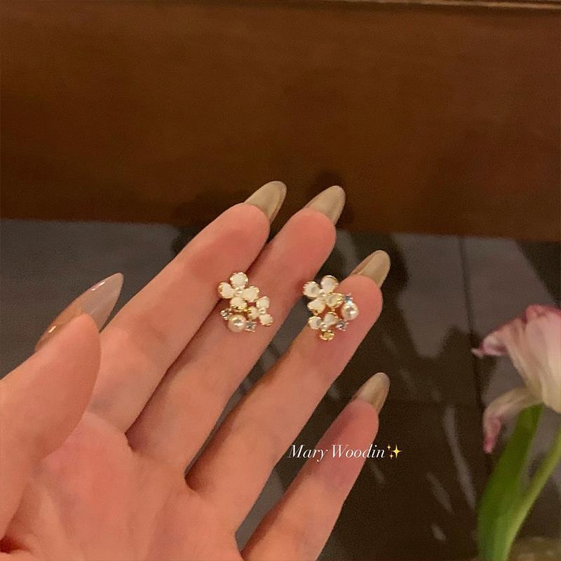 Cobre, circón, perla de alto brillo, laca fina, un par de aretes de plata 925, chapado en oro real