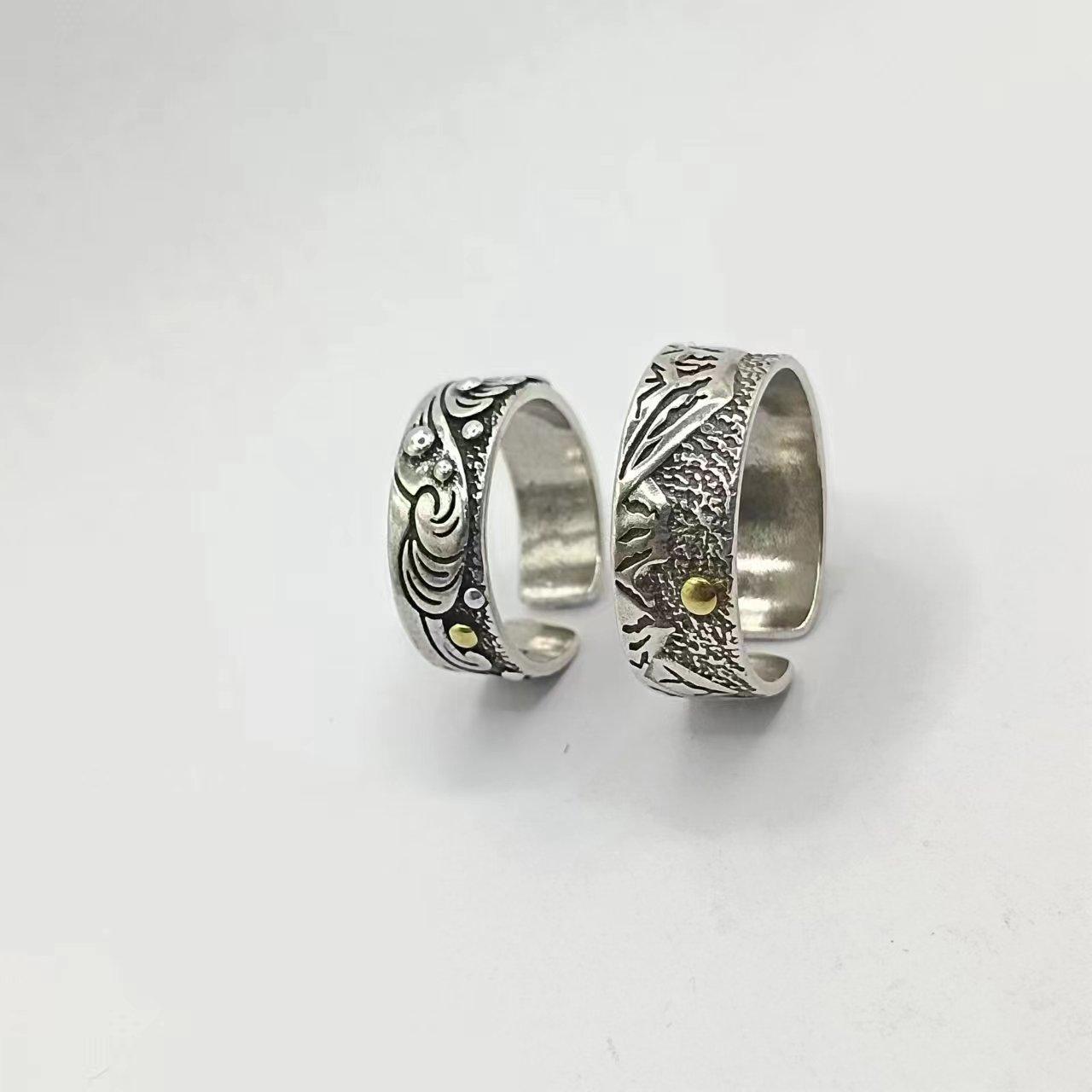 Chiba diseño hecho a mano anillo eachother para hombres y mujeres moda todo-combinable plata tailandesa hecho anillo de pareja un par de anillos