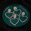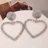 Aretes Aguja de Plata Europeos y Americanos Exagerados de Amor Grande Frío Hueco Corazón Durazno Aretes de Diamantes Completos Personalizados Simples con Forma de Corazón