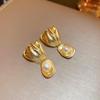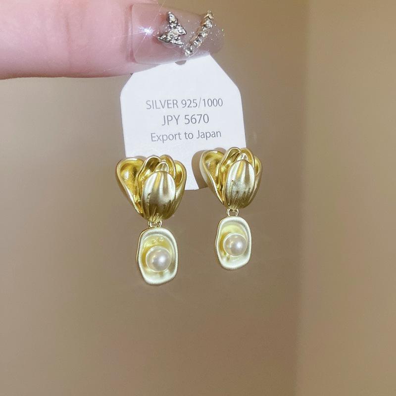 Pendientes de perlas de flores doradas 2023, nuevos pendientes populares, pendientes únicos de alta calidad, diseño de nicho femenino con sentido