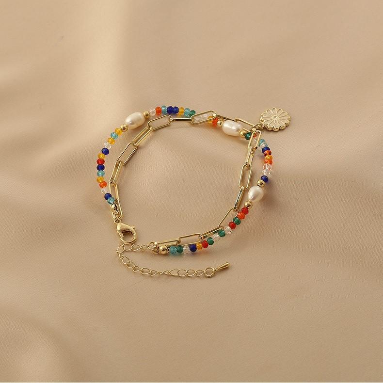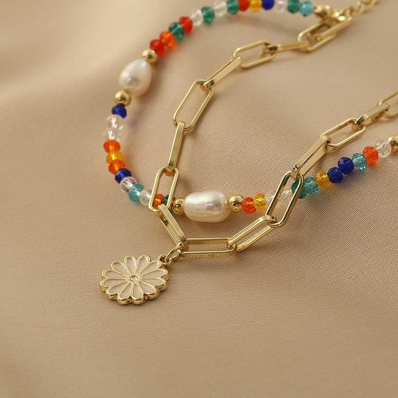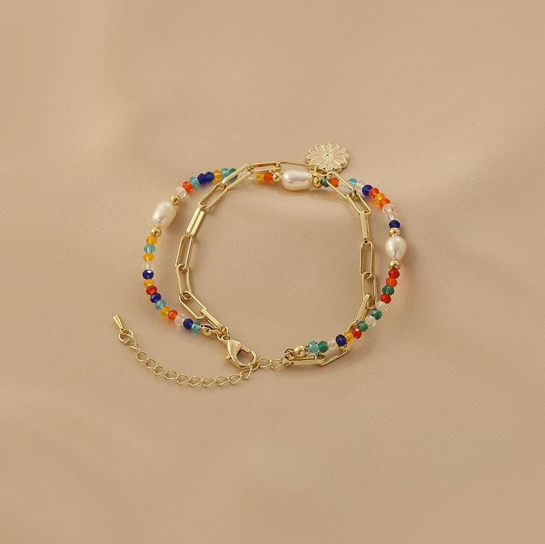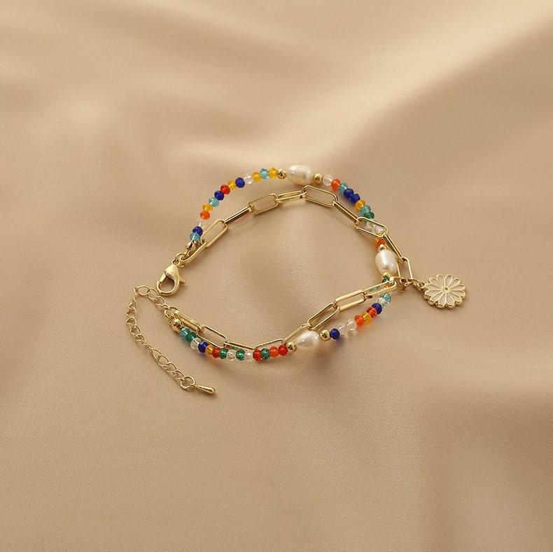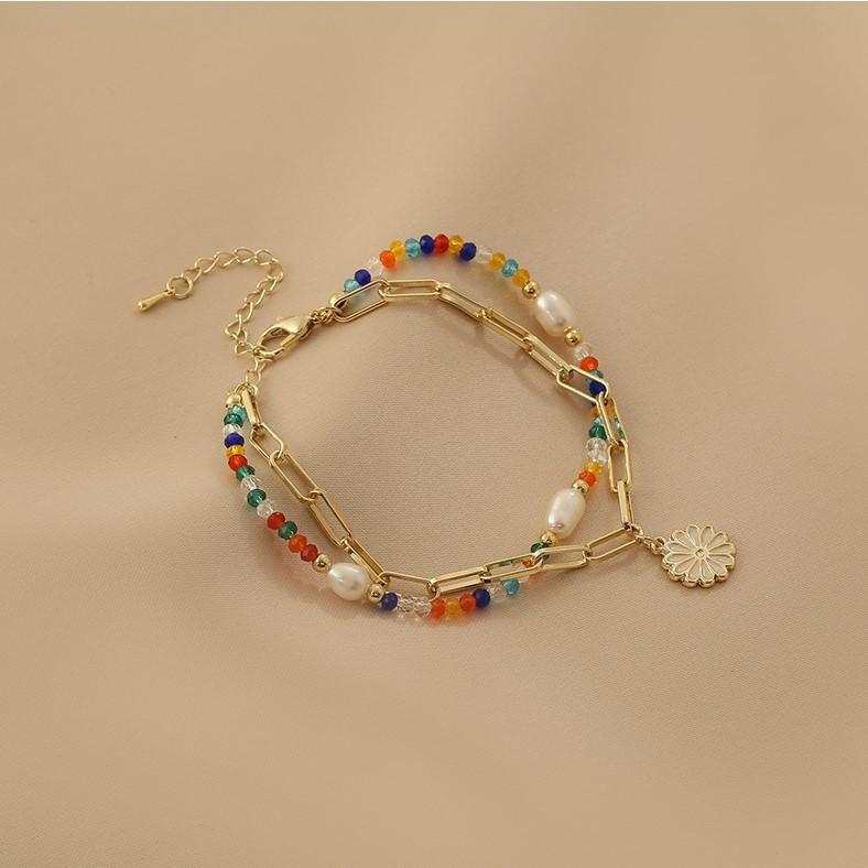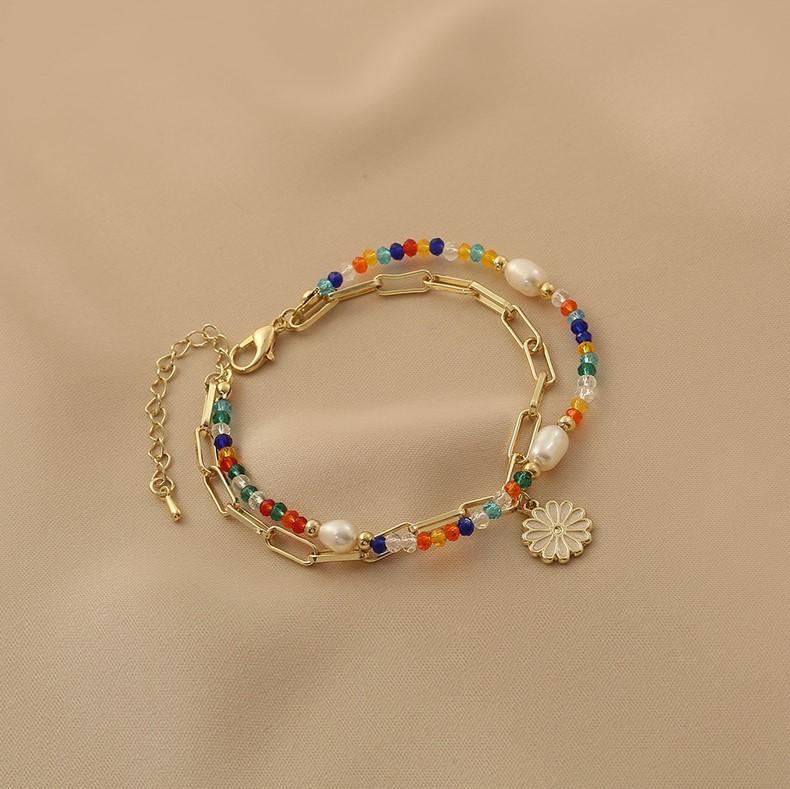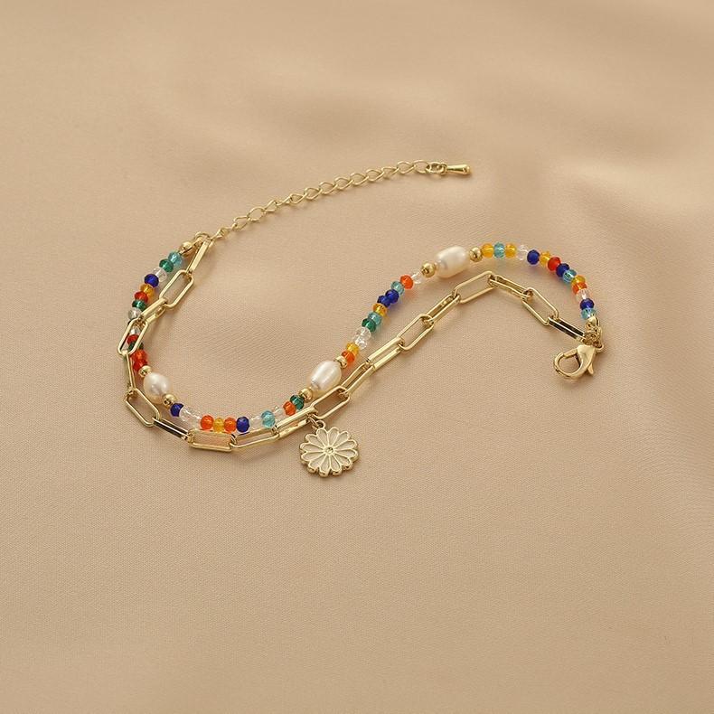 Pulsera de cuentas coloridas con diseño floral de nicho para mujer, nueva pulsera de margaritas frescas de verano 2023