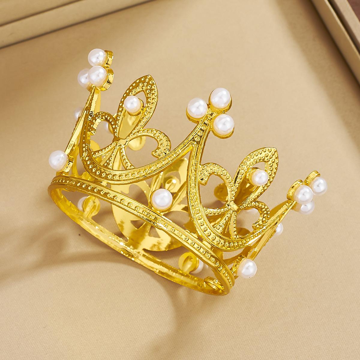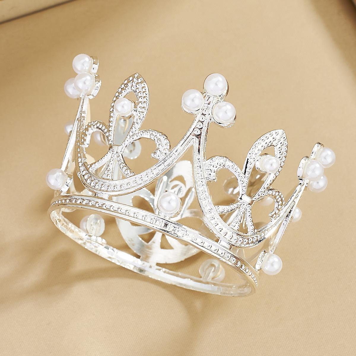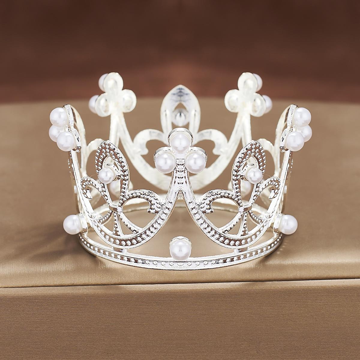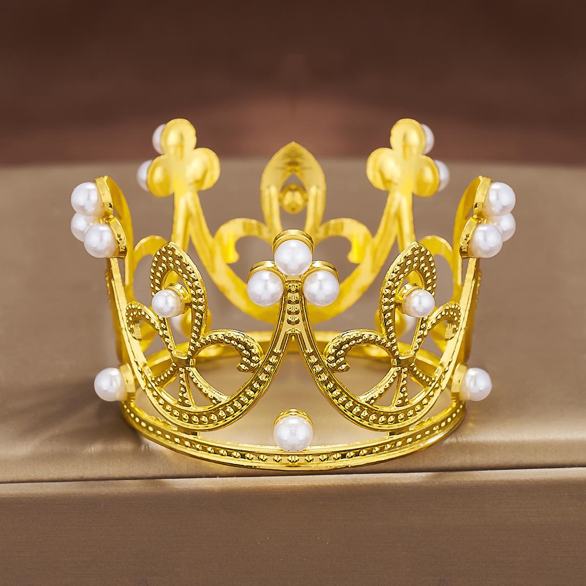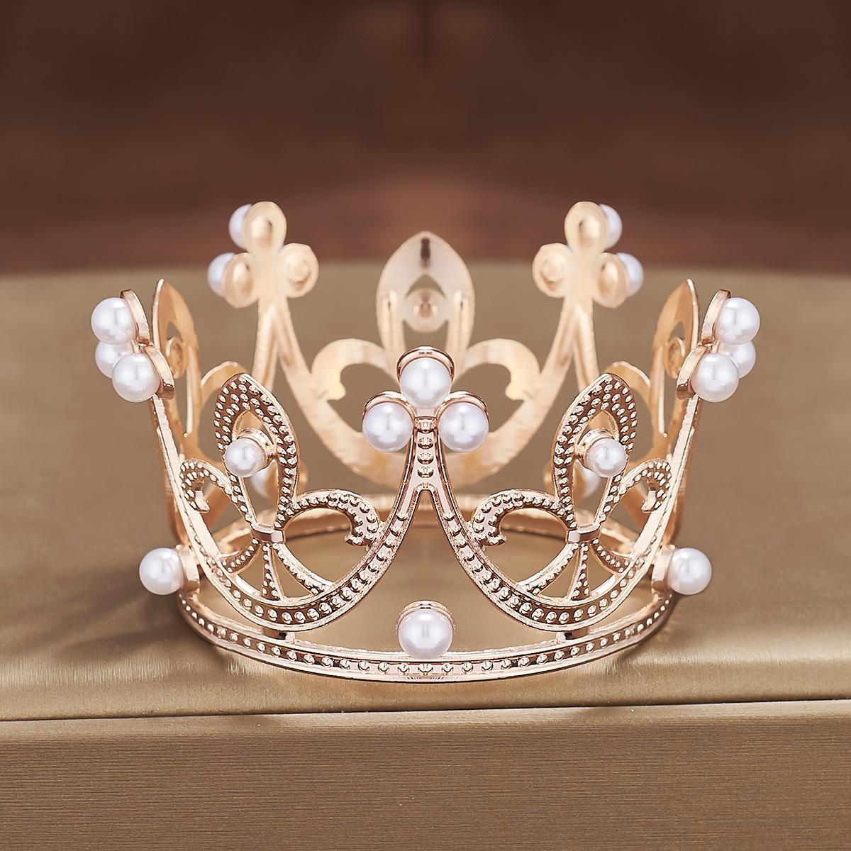 Fabricantes de coronas de metal redondas para niños, mini coronas de cumpleaños transfronterizas, decoración de tartas, flores, vestido, joyería, perlas