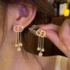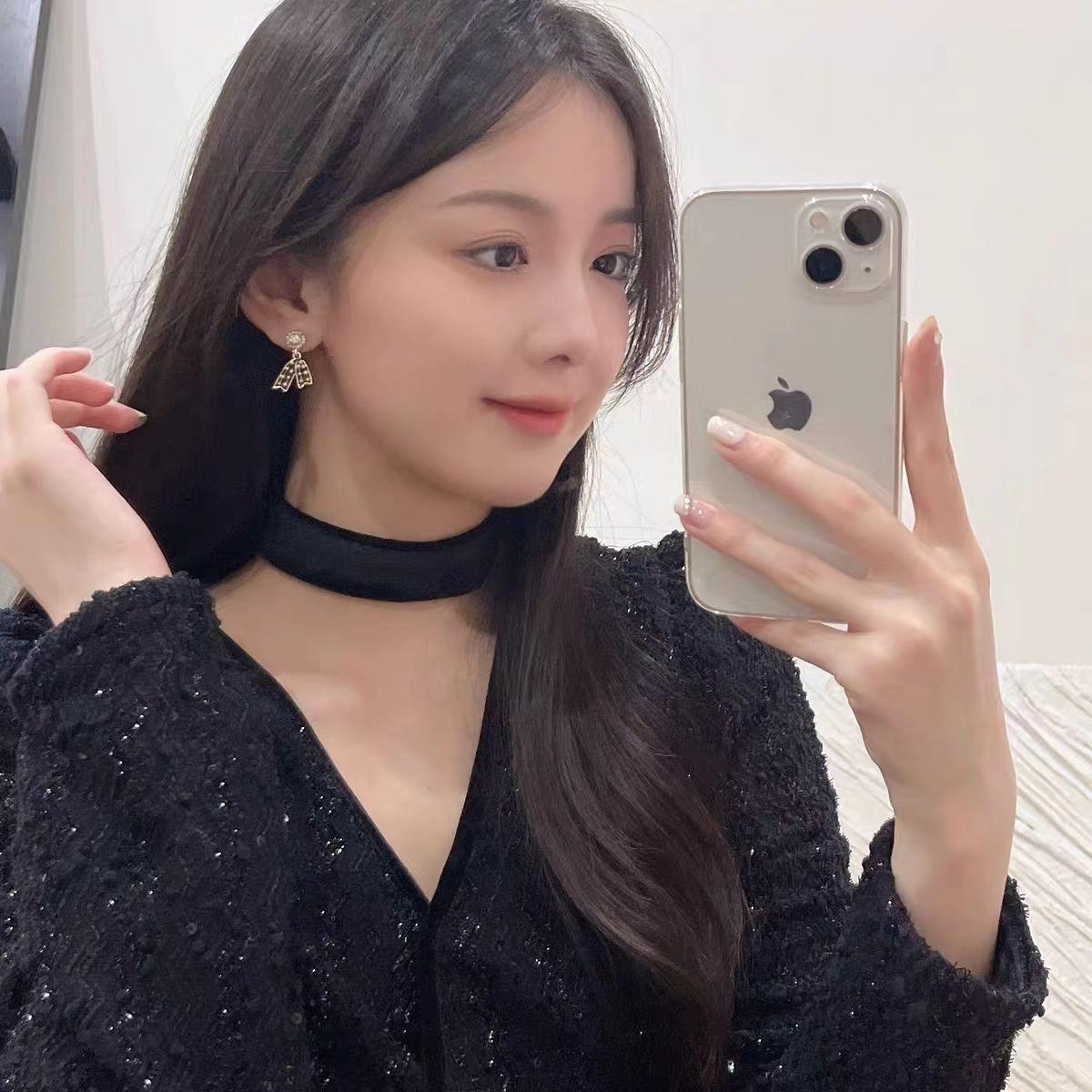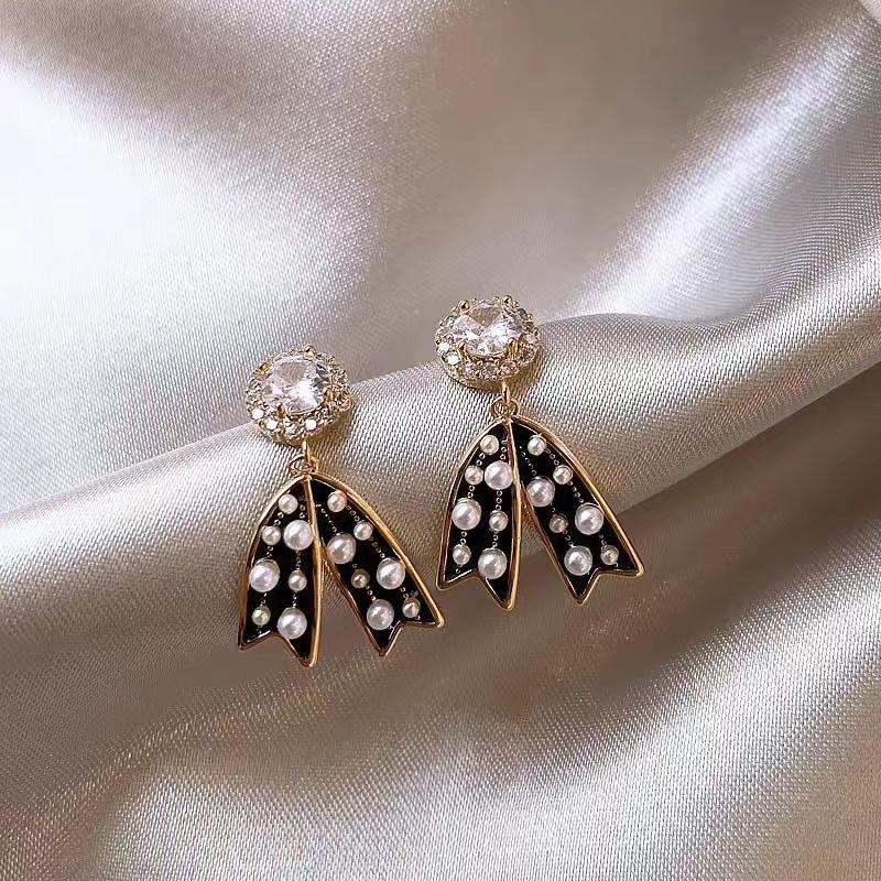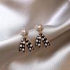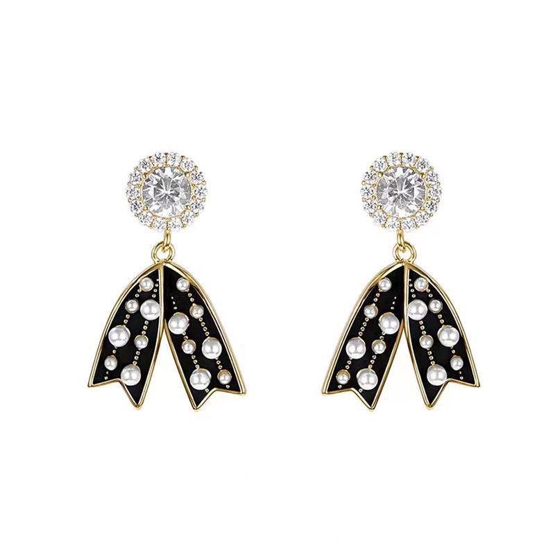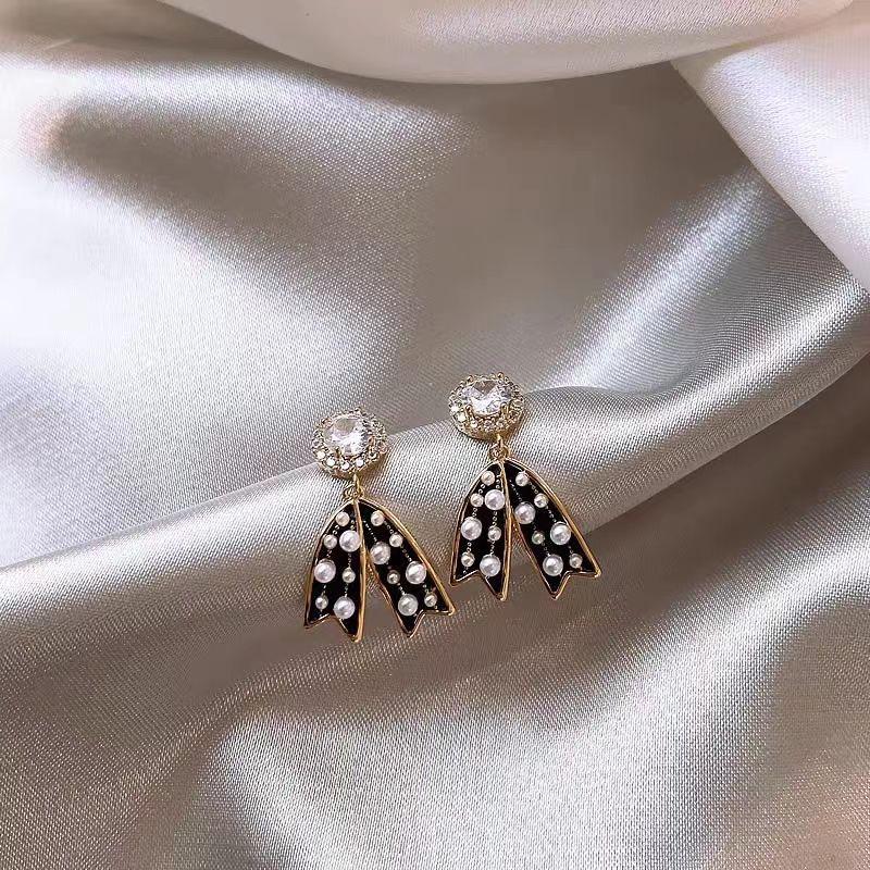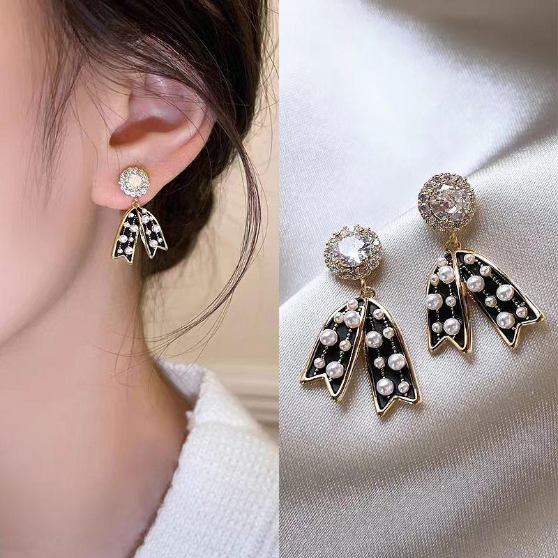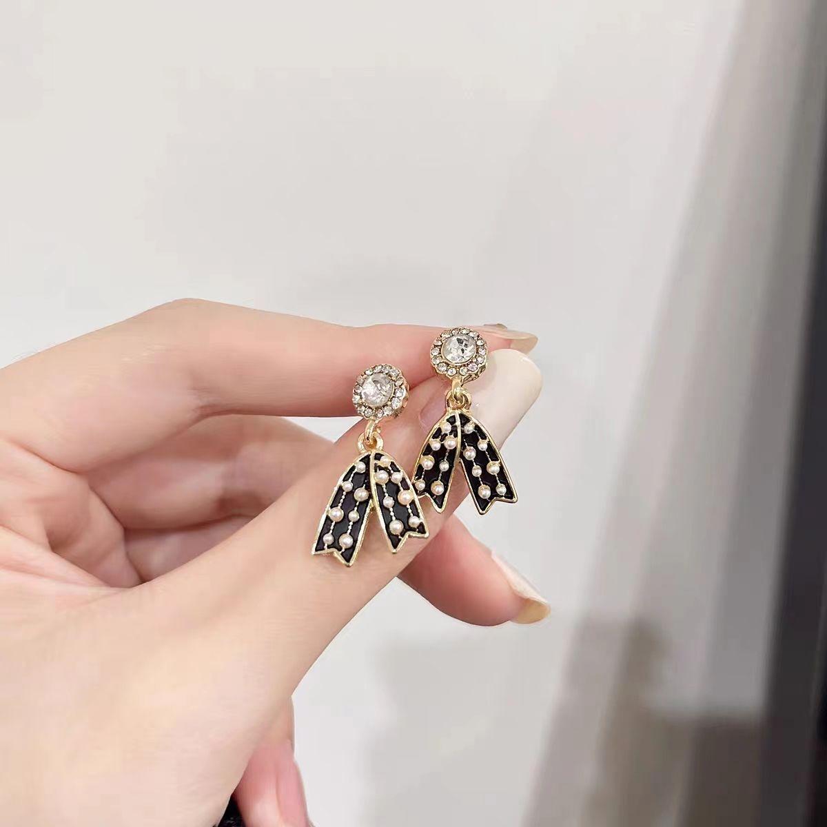 Pendientes de perlas con lazo 2024, nuevos pendientes de lujo ligeros con diseño de nicho, elegantes pendientes estilo Chanel.