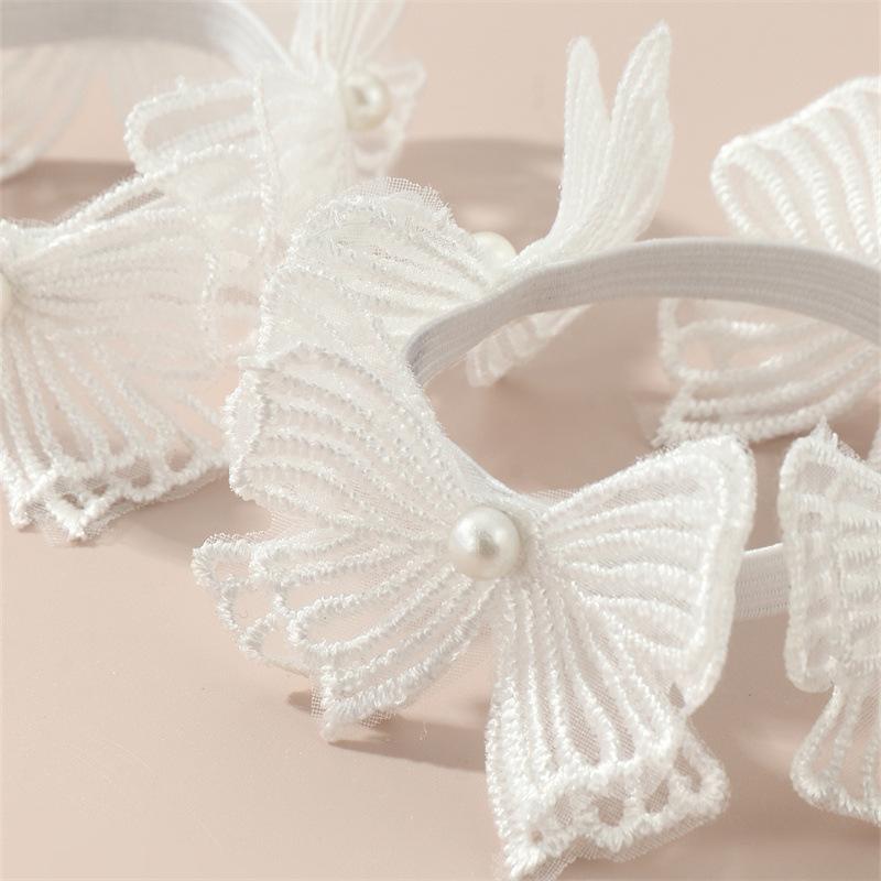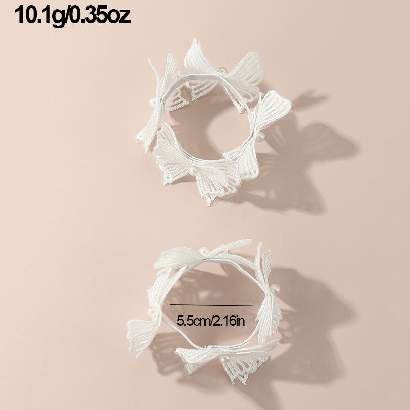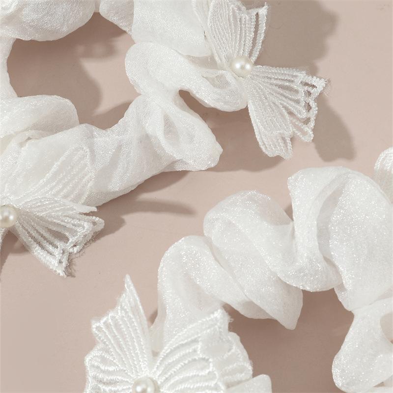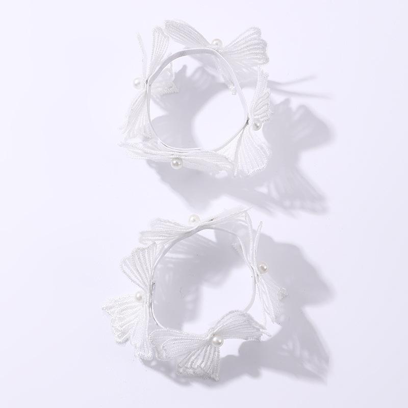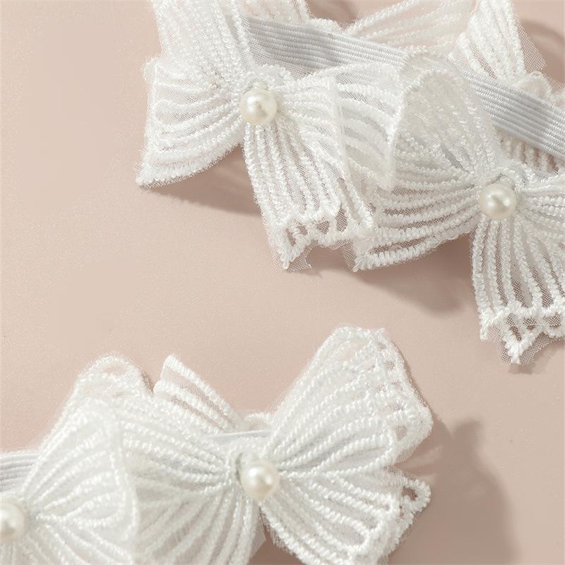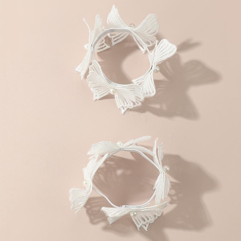 Nuevos accesorios para el cabello transfronterizos de estilo simple con lazo de encaje de organza blanca, bordado de perlas para uñas, anillo para el cabello para niños, traje