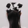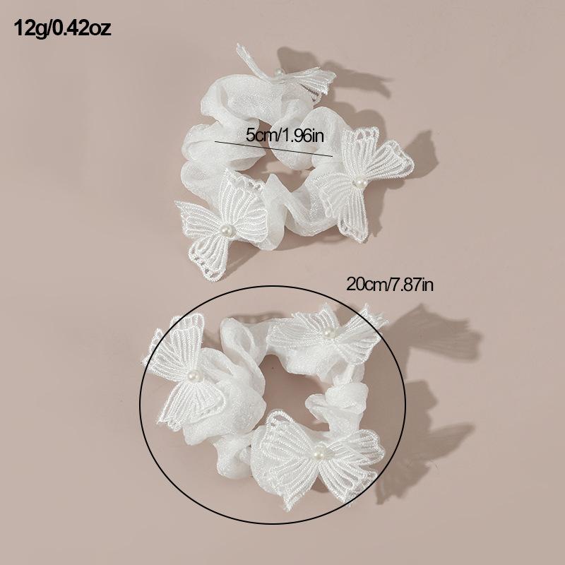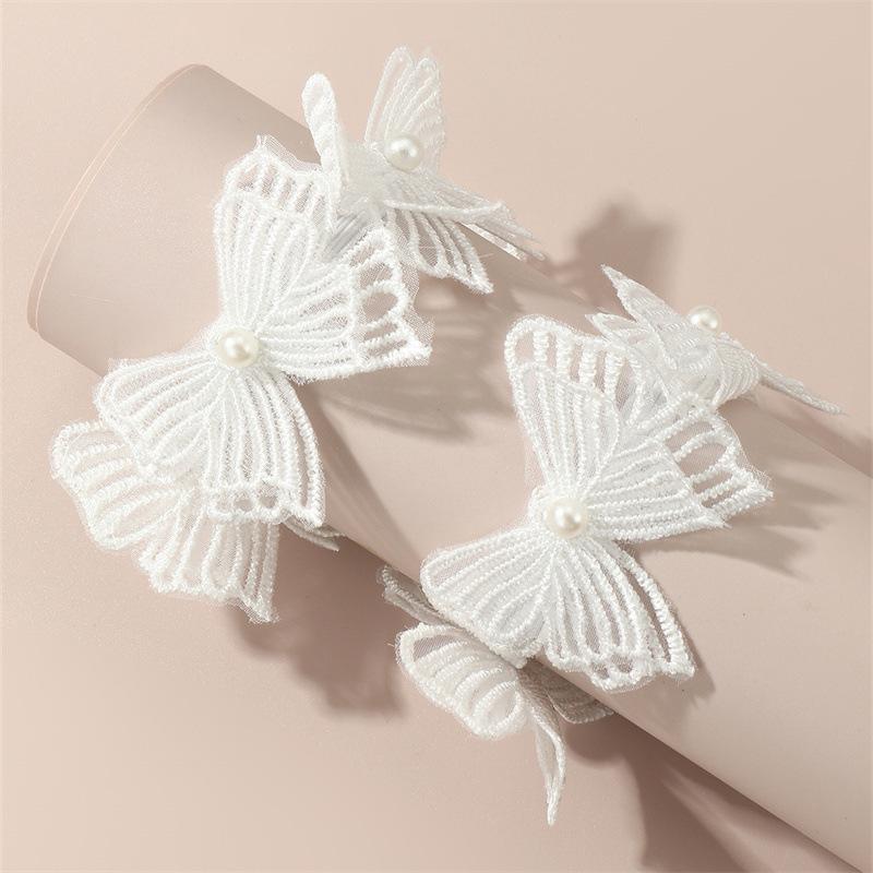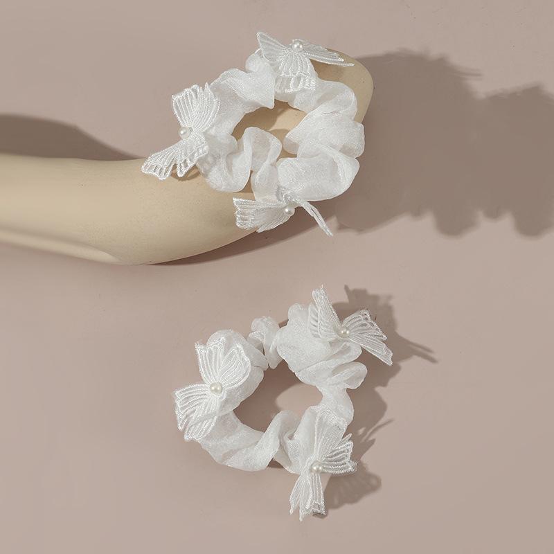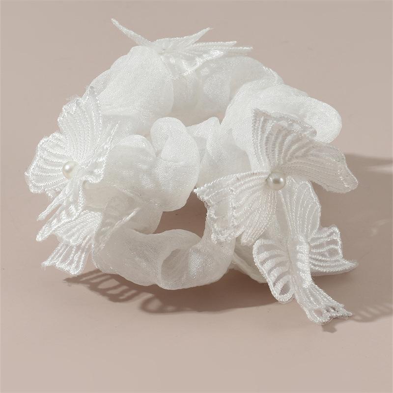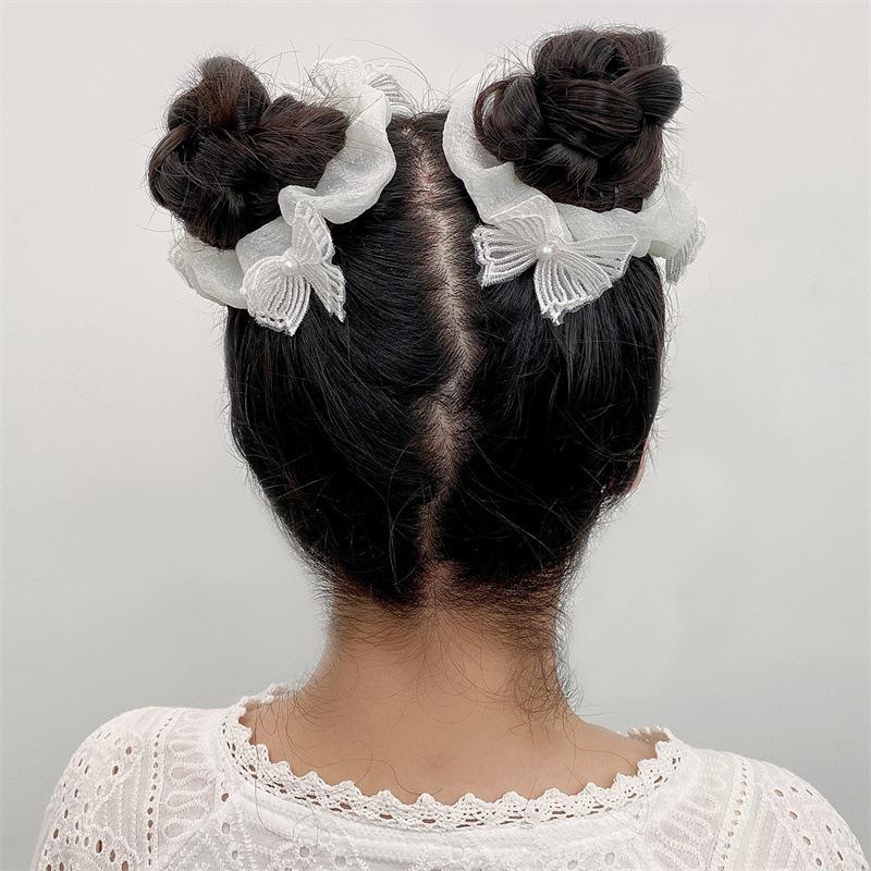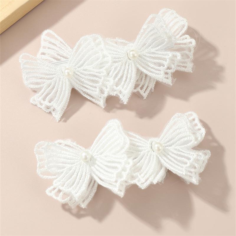 Nuevos accesorios para el cabello transfronterizos de estilo simple con lazo de encaje de organza blanca, bordado de perlas para uñas, anillo para el cabello para niños, traje