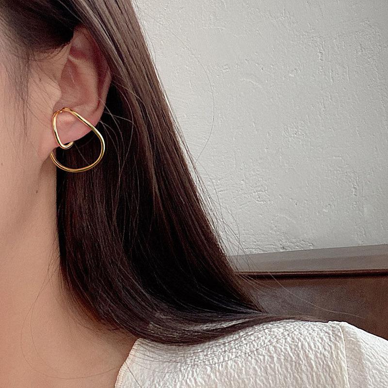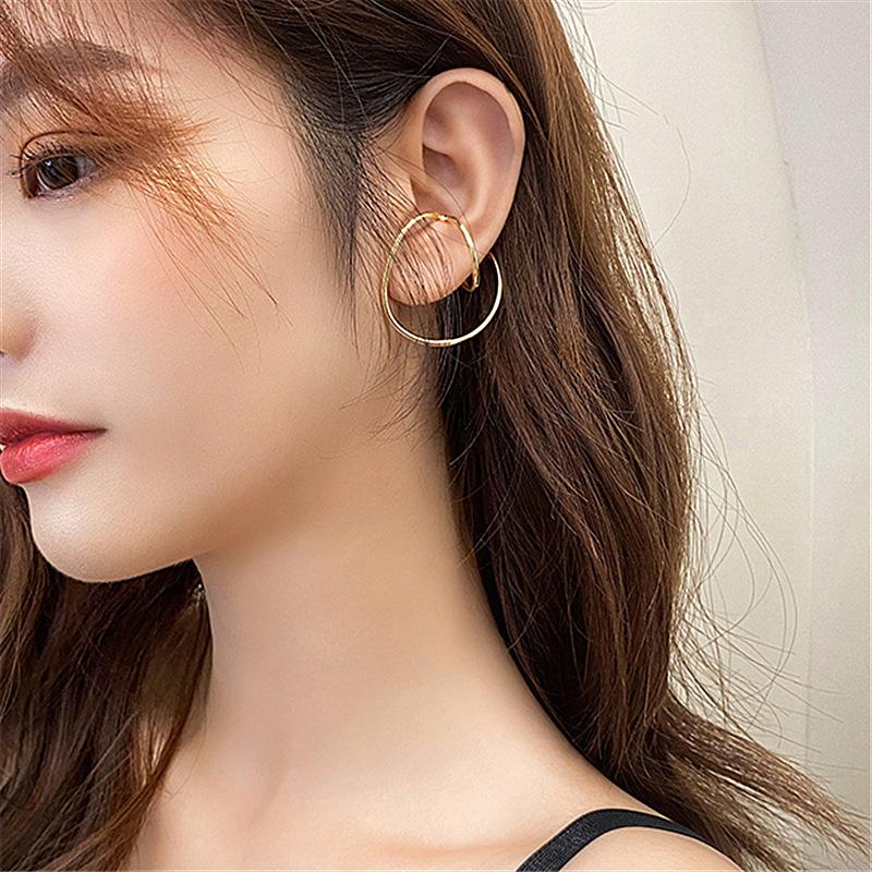 Compra Pendientes de clip de oreja de metal con diseño geométrico de estilo coreano, sin agujeros, estilo francés, estilo celebridad de Internet, pendientes retro de estilo frío y moderno. al por mayor en Joom.pro