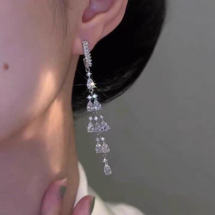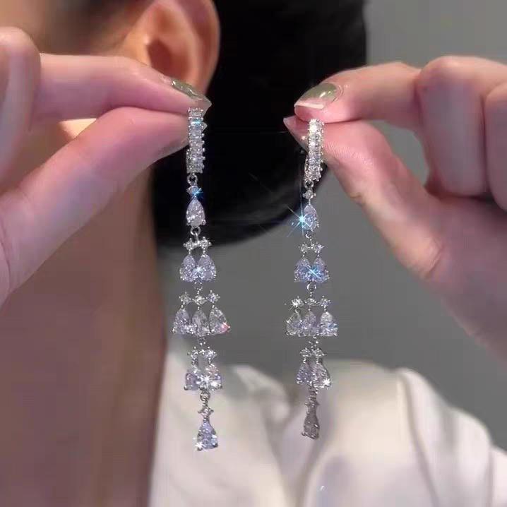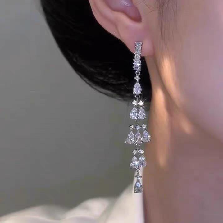 Pendientes largos con temperamento para mujer, diseño de nicho, llenos de diamantes, pendientes únicos 2024, nuevos pendientes únicos de moda al por mayor