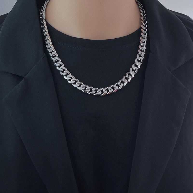 Compra Estilo Frío Ins Cadena Gruesa Hip-Hop Femenino Trendy Accesorios de Pareja Simple Masculino Cool Disco Acero de Titanio Collar Cubano al por mayor en Joom.pro