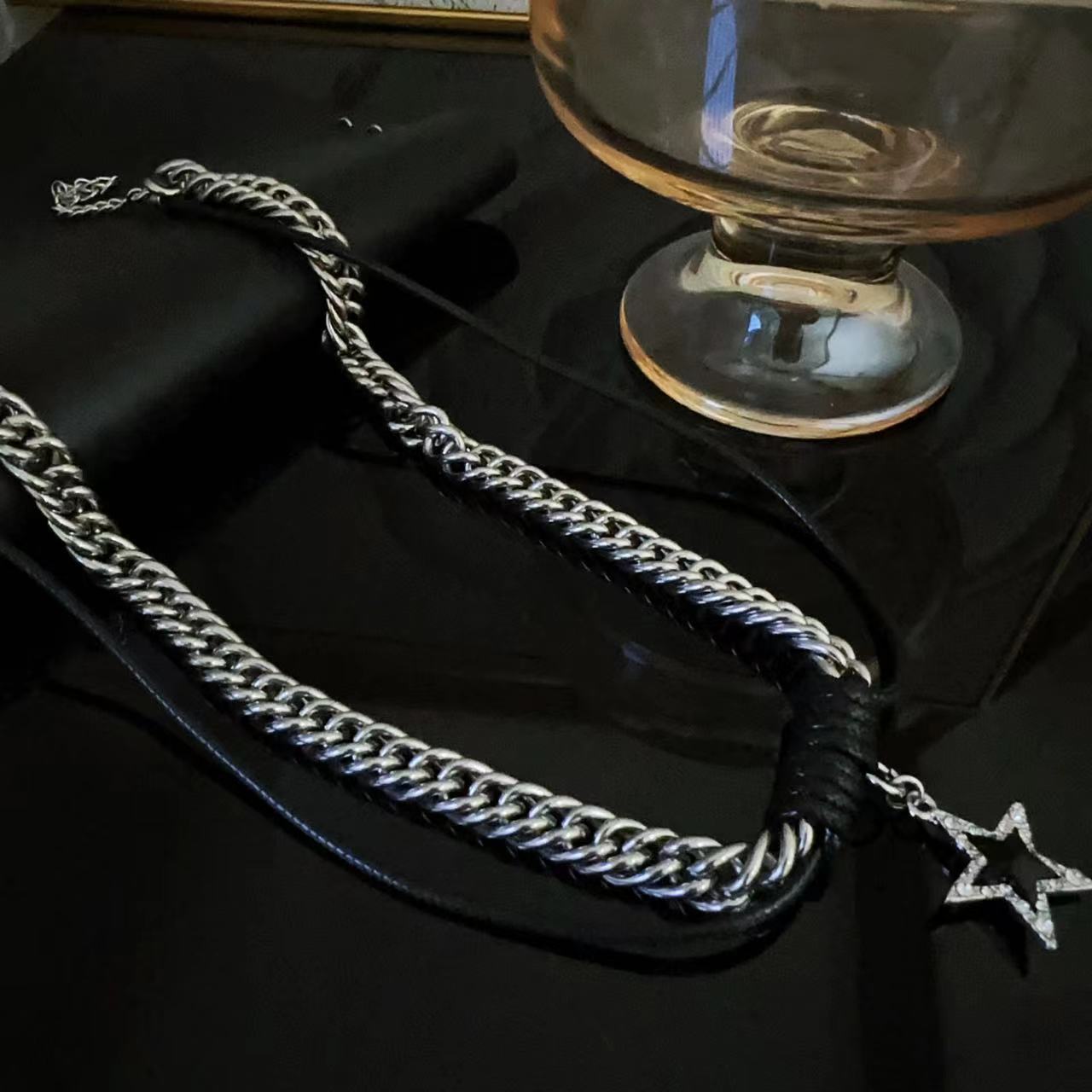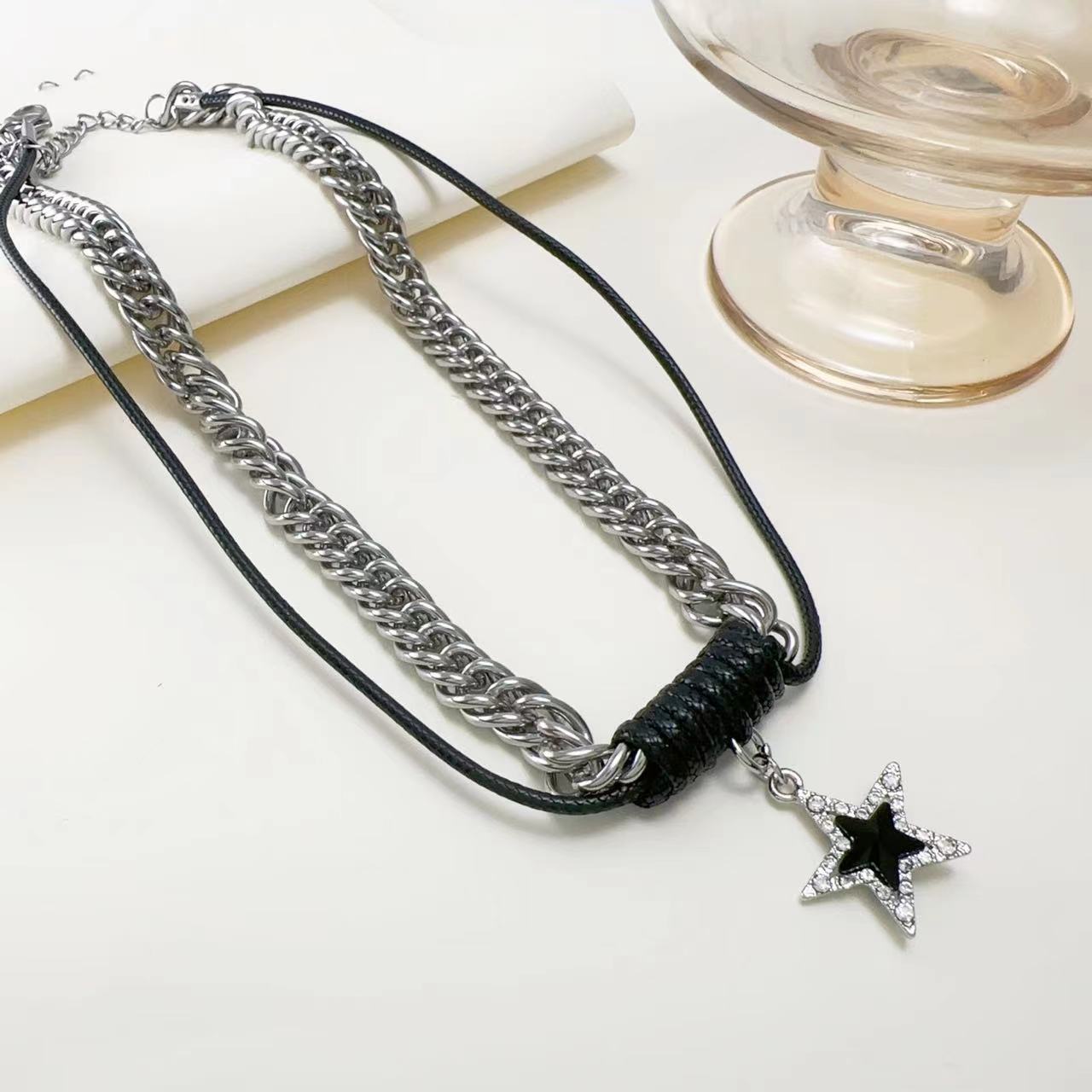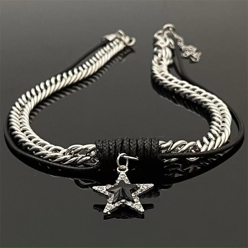 Collar con colgante de estrella de diamantes de doble capa para mujer, estilo hip-hop, con diseño de nicho y cadena para clavícula, Tide Cool Hot Girl