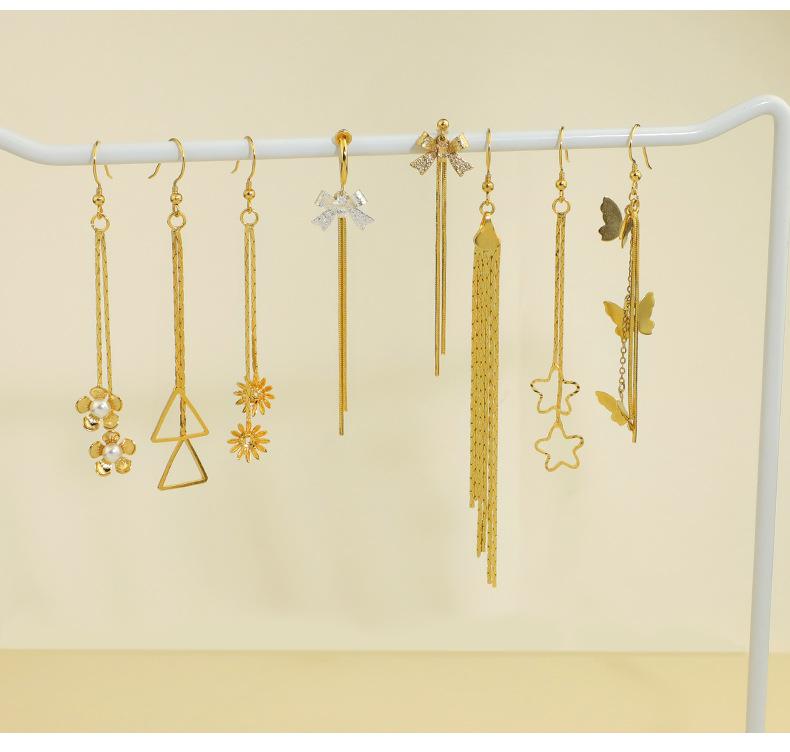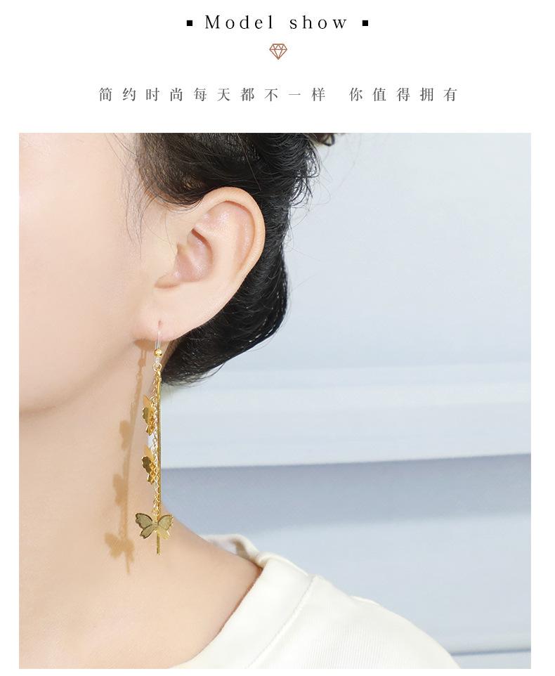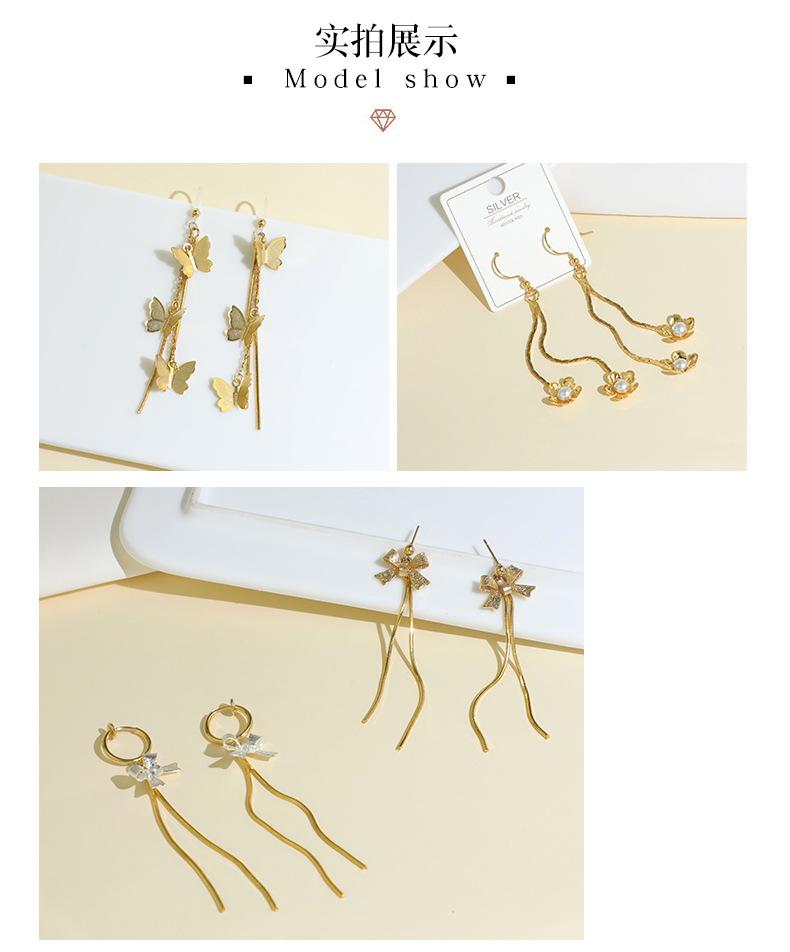 Bow tassel earrings/with butterfly earplugs (hanging electric imitation gold)