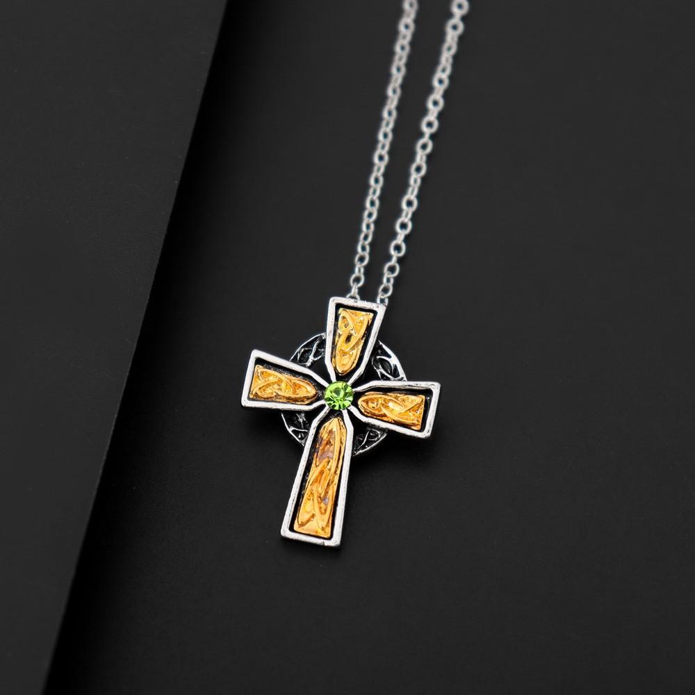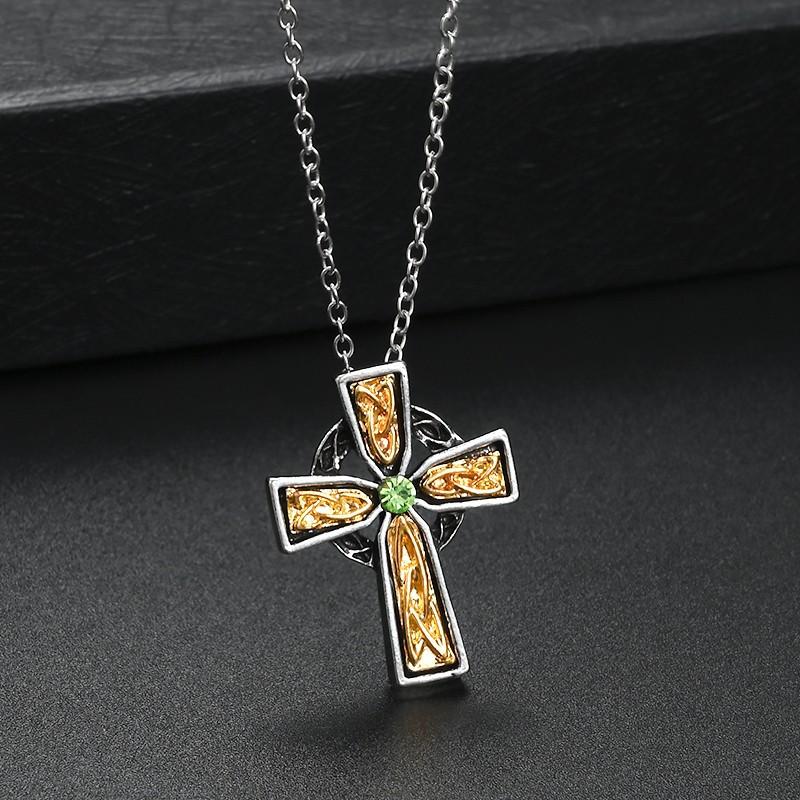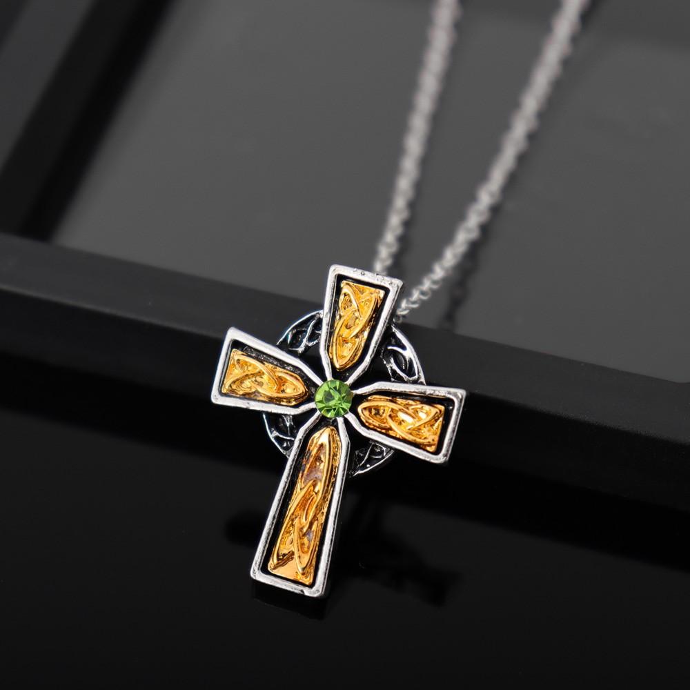 Temu gran oferta collar cruz bicolor diamante verde esmeralda celta bendición religiosa entrega en una pieza Temu