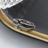 Chao Sheng Plata Esterlina s925 Vintage Incrustado Zircón Negro Anillo Geométrico de Doble Capa Moda Creativa Personalizada Anillo de Dedo