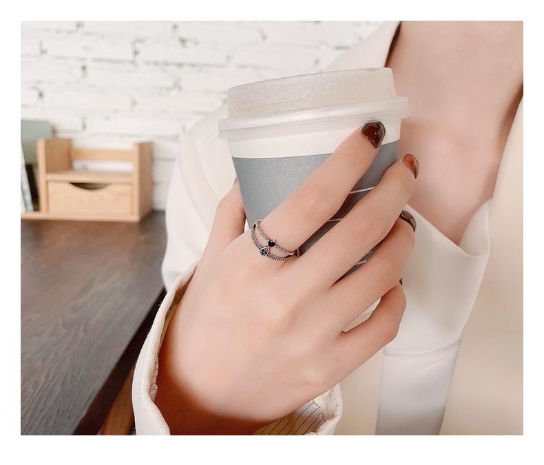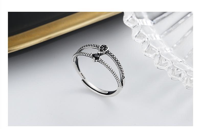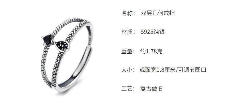 Compra Chao Sheng Plata Esterlina s925 Vintage Incrustado Zircón Negro Anillo Geométrico de Doble Capa Moda Creativa Personalizada Anillo de Dedo al por mayor en Joom.pro