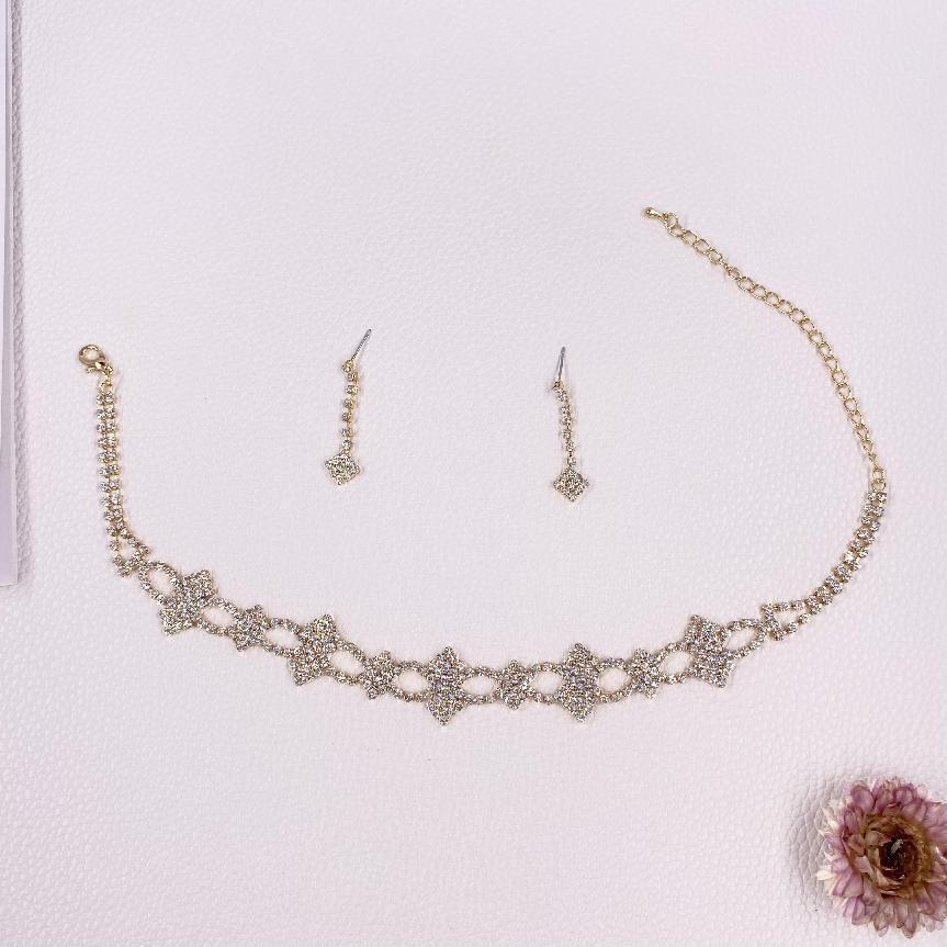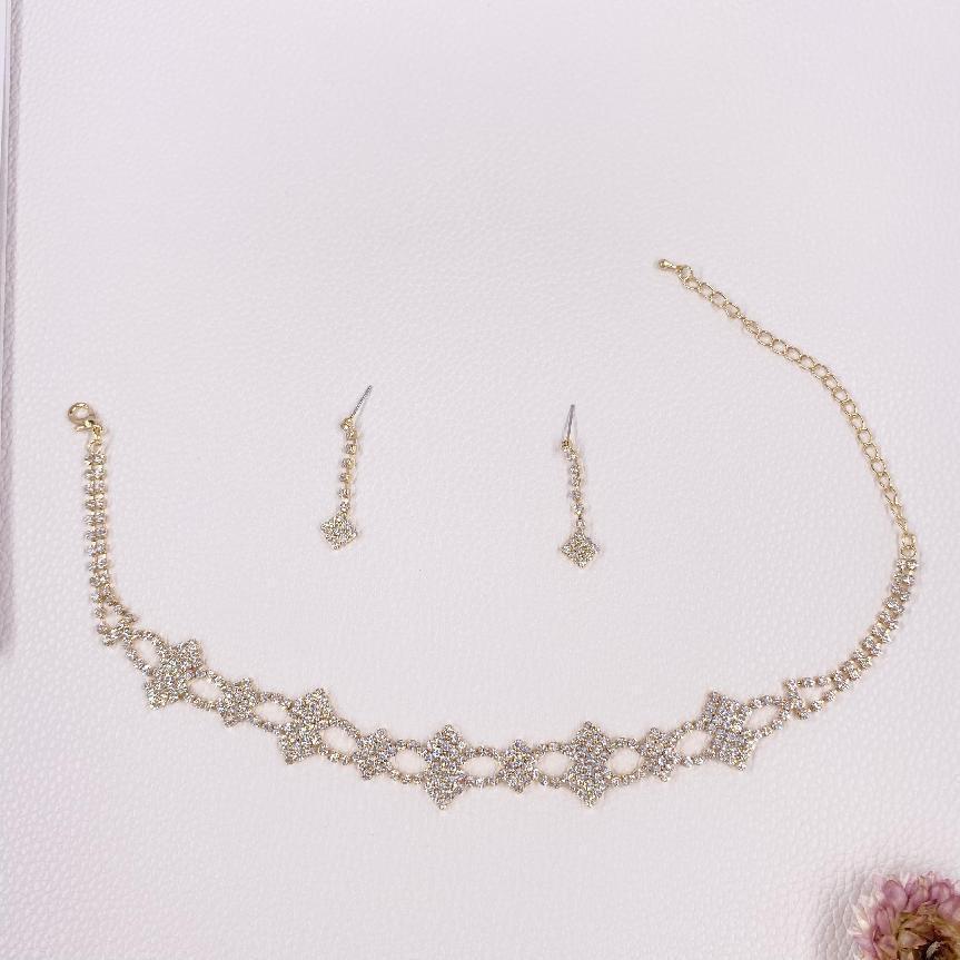 Nueva joyería transfronteriza europea y americana, elegante collar de diamantes de imitación, pendientes, traje de cena, accesorios llenos de diamantes.