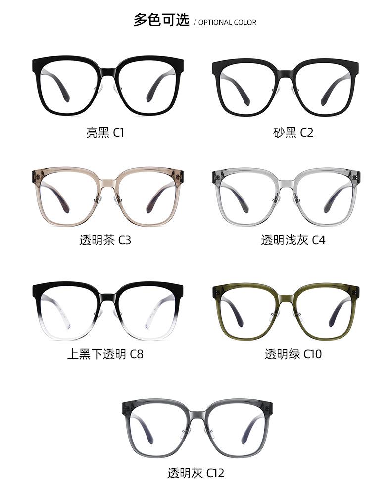 Compra Nuevas gafas cuadradas simples, de marco grande, que cubren la cara, adelgazantes, anti-luz azul, gafas ópticas de marco completo TR coreanas al por mayor en Joom.pro