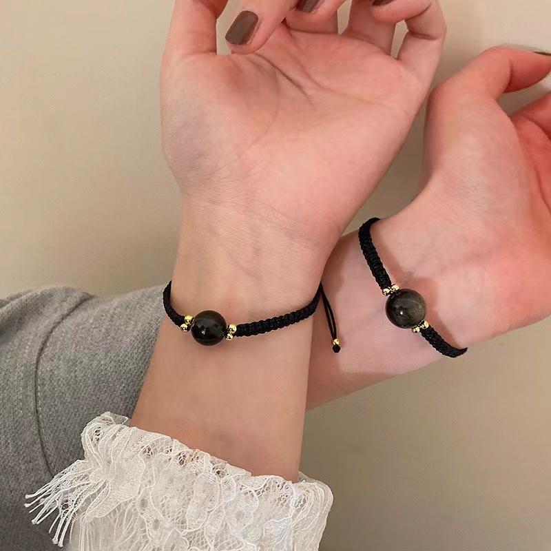Brazalete de Pareja con Sentido de Diseño de Nicho Par de Cuerda de Mano Negra para Hombre y Mujer Cuerda Tejida Brazalete de Novia Joyería de Mano