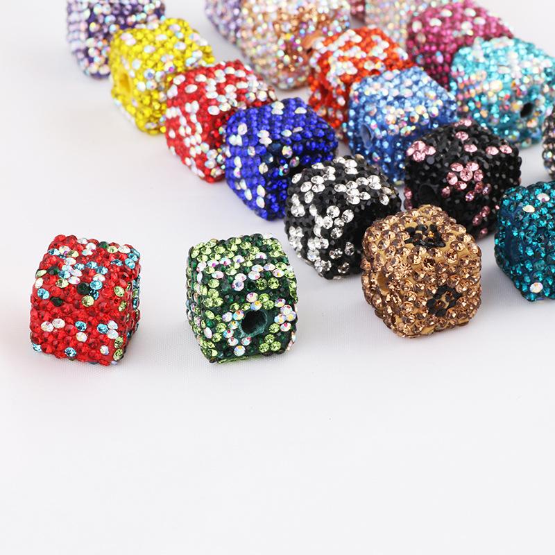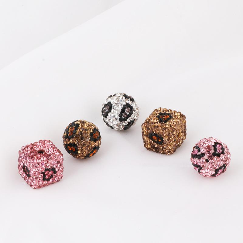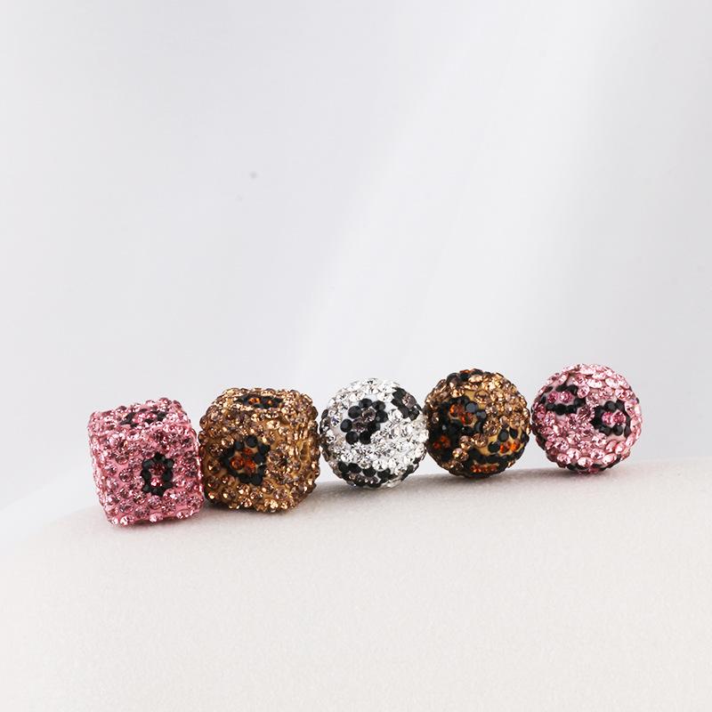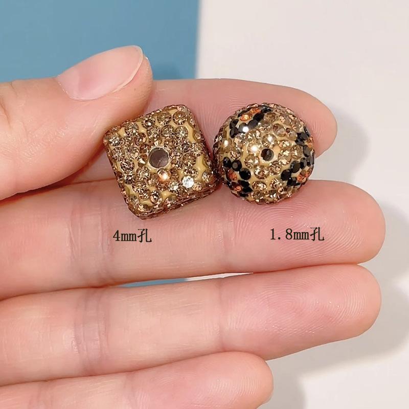 Cuentas de arcilla suave con estampado de leopardo, color cuadrado, diamantes completos, bola de diamantes Shambhala, agujero recto, DIY, accesorios de joyería para cadena de bolso de teléfono móvil