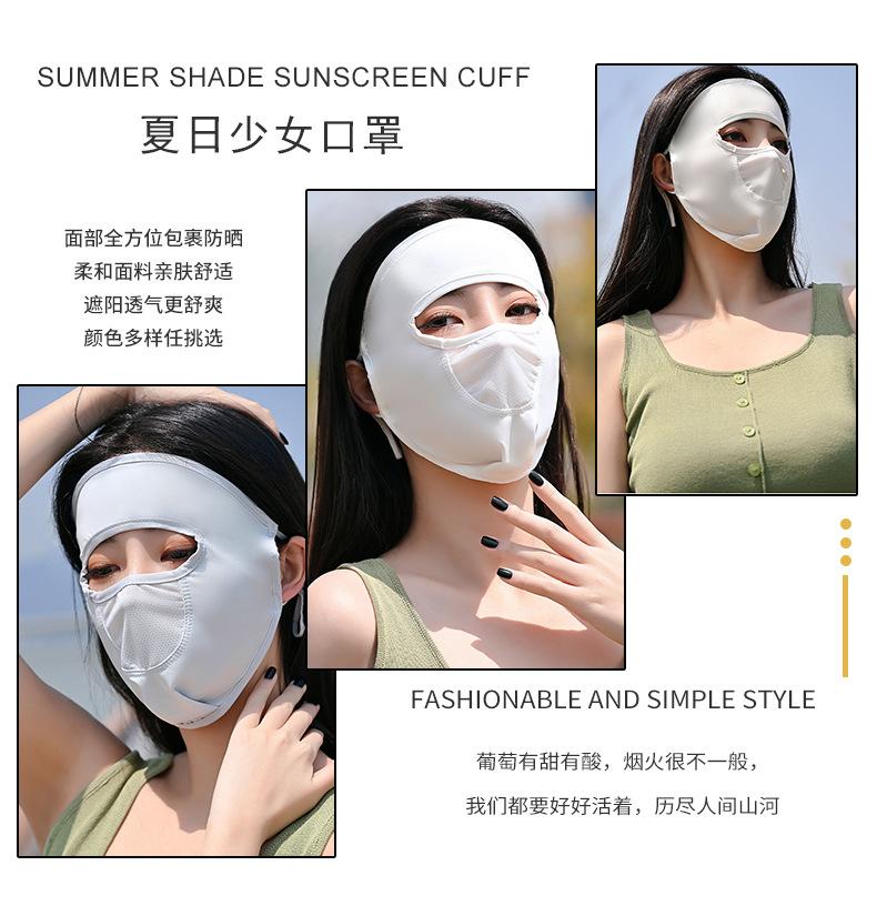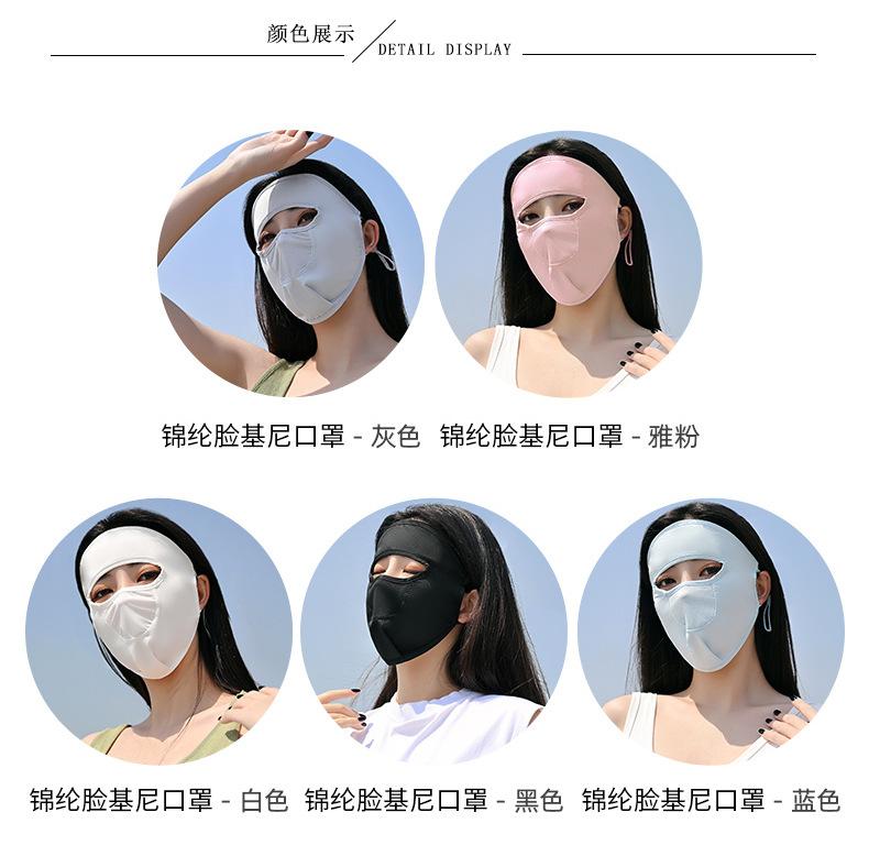 Mascarilla facial completa de protección solar de color sólido para mujer, protección UV de verano, protección solar, mascarilla facial de seda de hielo para conducir, protección facial Kini
