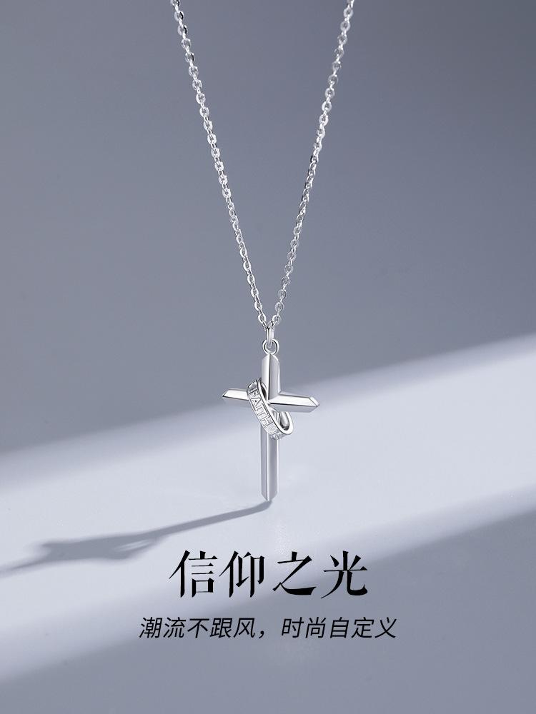 Collar de cruz de moda para hombre, colgante de hip-hop, japonés, combinable, de lujo, con luz de fe, regalo para novio.