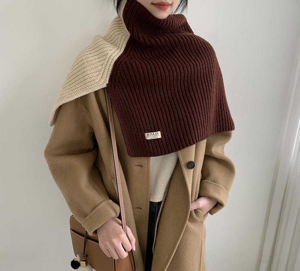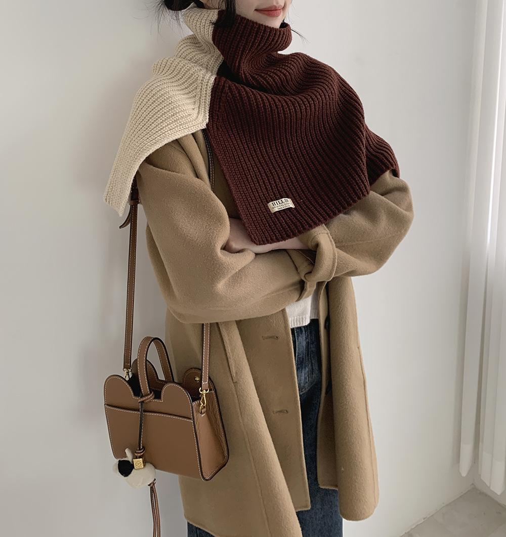 Bufanda tipo chal a juego para otoño e invierno, suave, glutinosa, estilo coreano, estilo retro, con costuras de color liso.