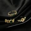 Anillo de boda de lujo con diamantes de imitación de oro de 18 quilates y flor tallada de ratán.